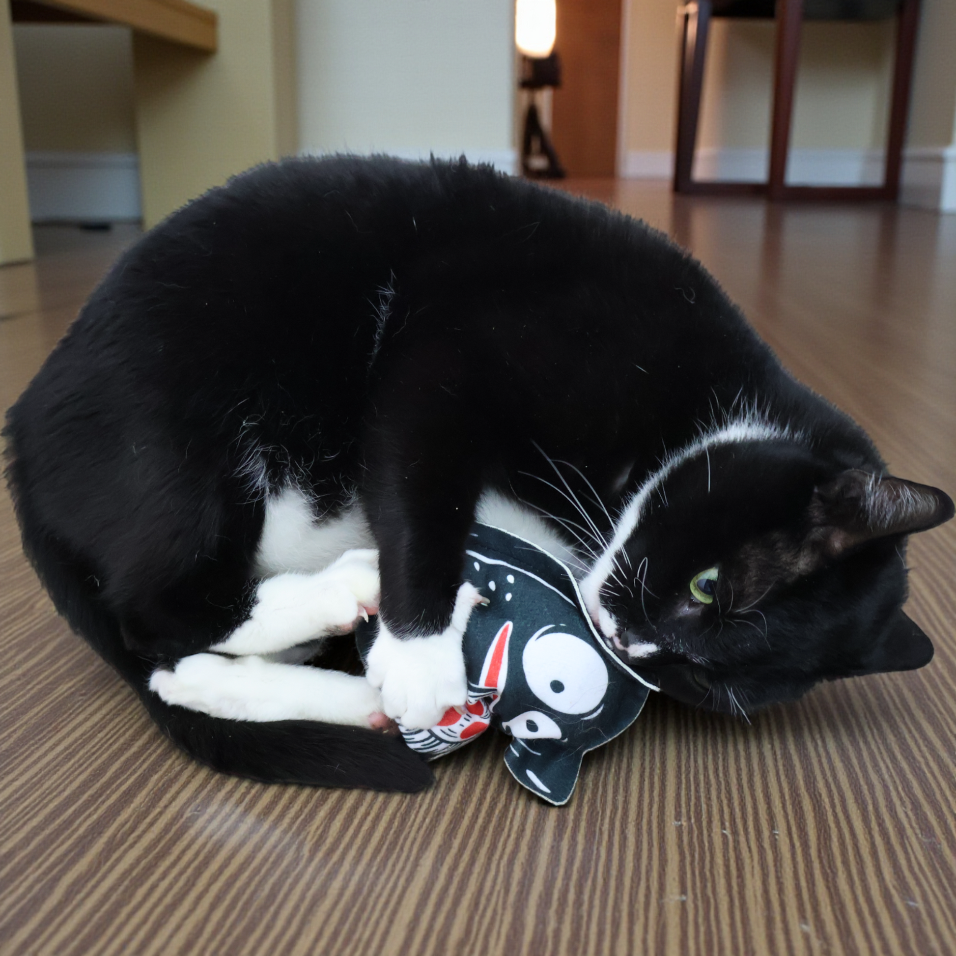 Ob ausgelassenes Spielen, neugieriges Jagen, sanftes Knabbern oder entspanntes Kuscheln – dieses Schmusekissen spricht mehrere natürliche Instinkte gleichzeitig an. Die flauschige Füllung, das angenehme Material und die kompakte Größe machen es ideal zum Greifen, Tragen und Herumrollen.
