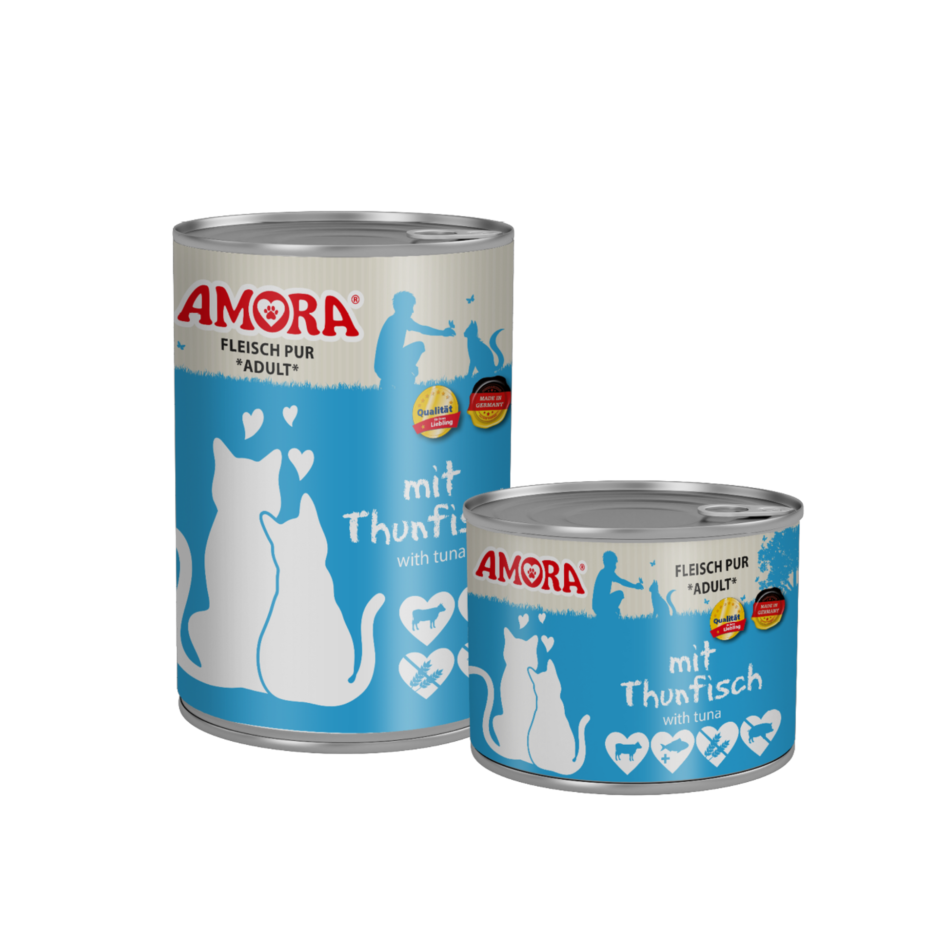 AMORA Cat Fleisch Pur Thunfisch liefert ein ausgewogenes, naturbelassenes Menü – ideal für Katzen, die kräftige Fleischsorten lieben, aber den feinen Geschmack von Thunfisch nicht missen möchten.