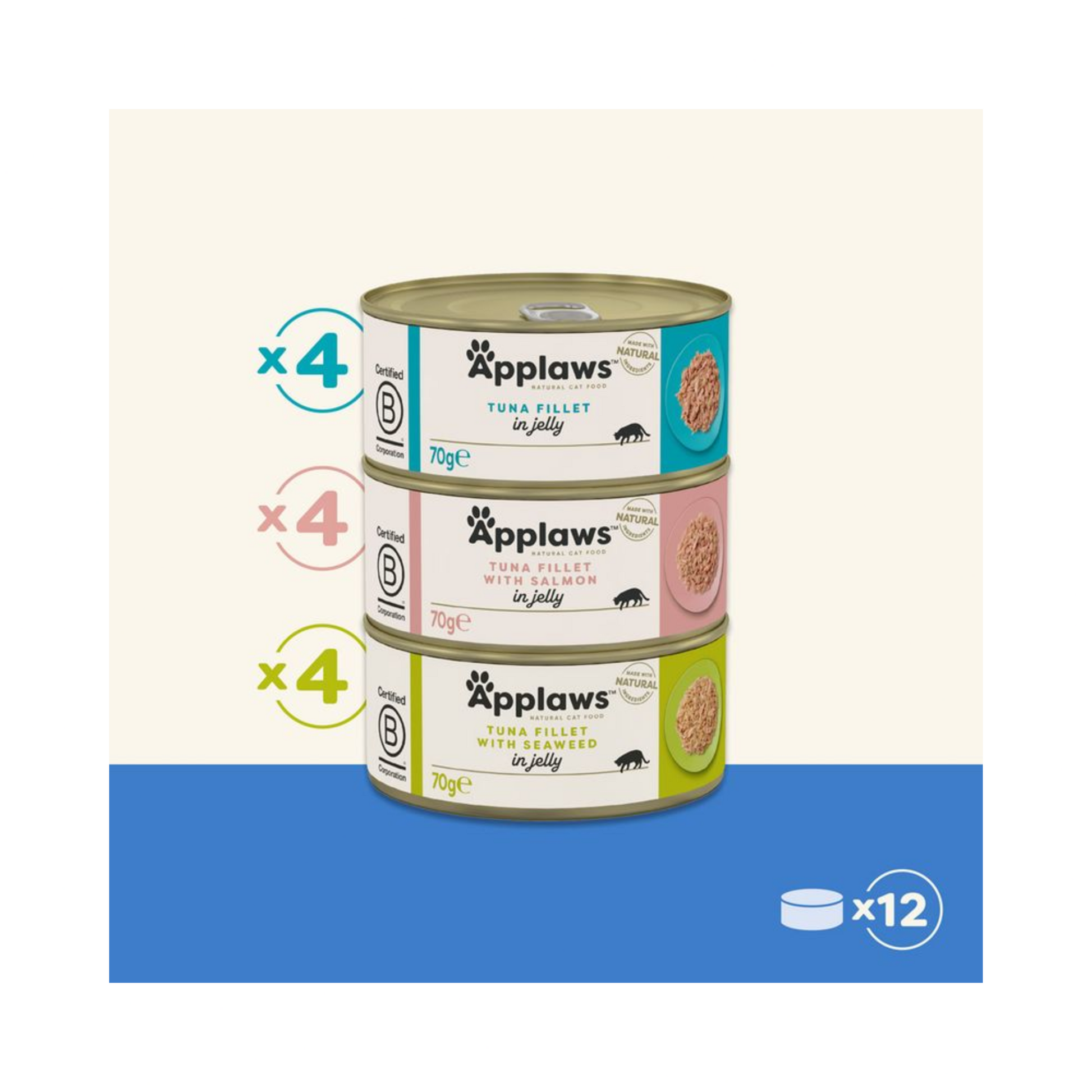 Du kannst Applaws Fisch Selection in Gelee pur servieren oder als leckere Ergänzung zu Trockenfutter nutzen.