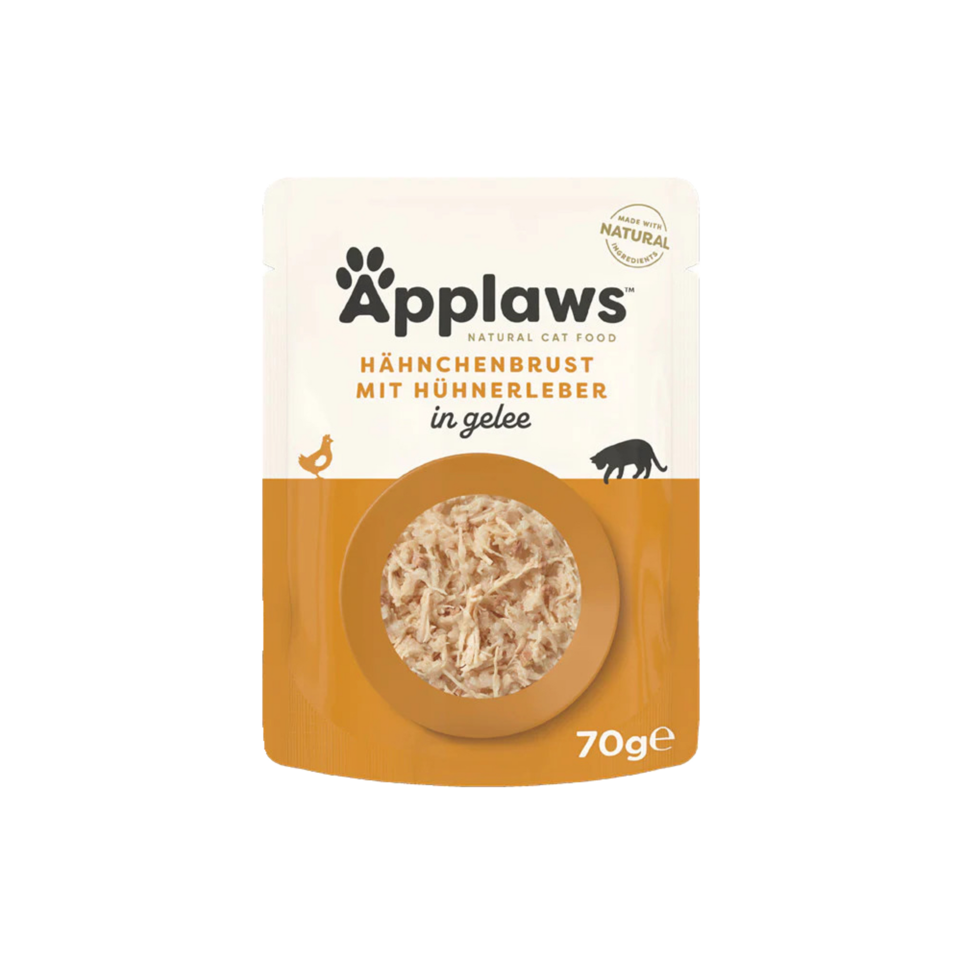 Mit Applaws Hähnchenbrust mit Hühnerleber in Gelee bietest Du Deiner Samtpfote ein hochwertiges Ergänzungsfuttermittel, das ausschließlich aus natürlichen Zutaten besteht. Jede Portion enthält saftige Hähnchenbrust und feine Hühnerleber – beides reich an wertvollen Proteinen, um Deine Katze mit dem Besten aus der Natur zu verwöhnen. Das zarte Gelee sorgt für extra Geschmack und saftige Konsistenz, die selbst wählerische Katzen begeistert.