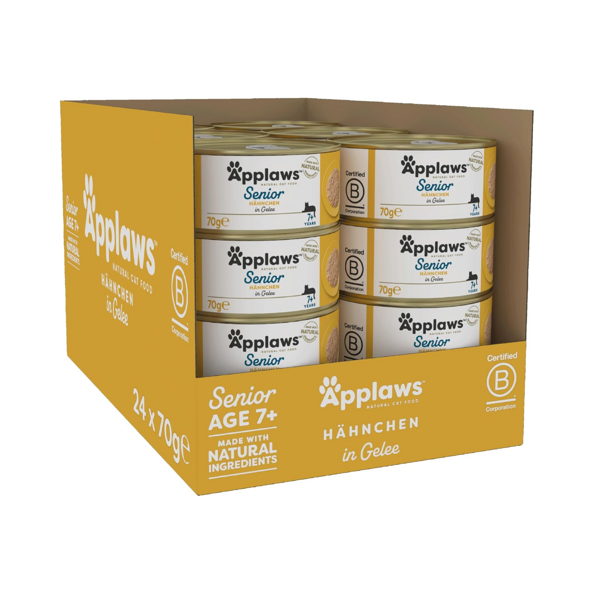 Schenke Deiner älteren Katze ein besonders schmackhaftes und gesundes Nassfutter. Applaws Senior Hühnchen in Gelee ist speziell auf die Bedürfnisse von Senior-Katzen abgestimmt. Mit hochwertigen, natürlichen Zutaten und einem hohen Anteil an saftigem Hühnchen bietet dieses Futter alles, was Deine Katze für ein vitales Leben im Alter braucht. Ganz ohne künstliche Zusatzstoffe unterstützt es die Gesundheit Deines Lieblings auf natürliche Weise.