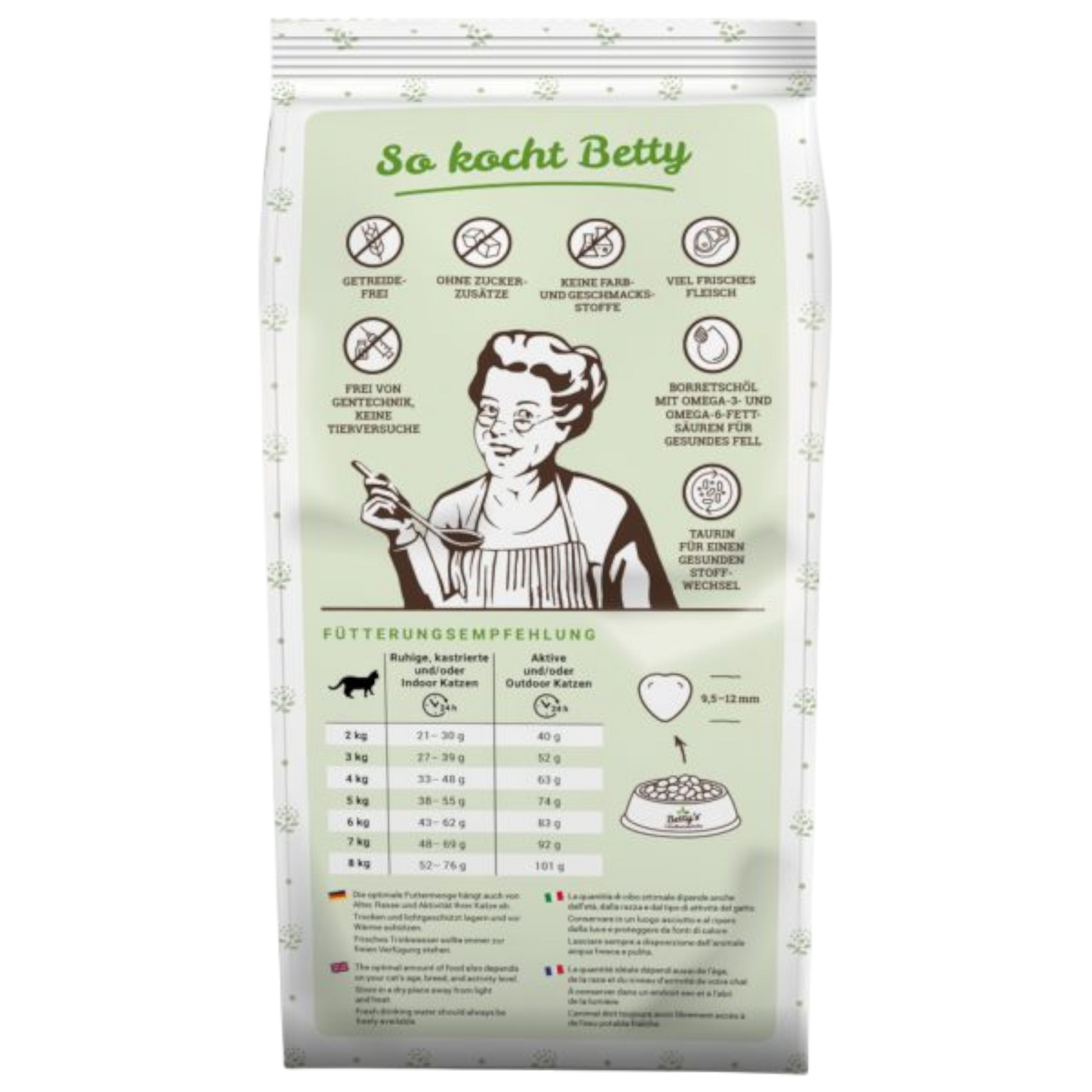 - Getreidefreie Zusammensetzung – orientiert am natürlichen Bedarf der Katze
