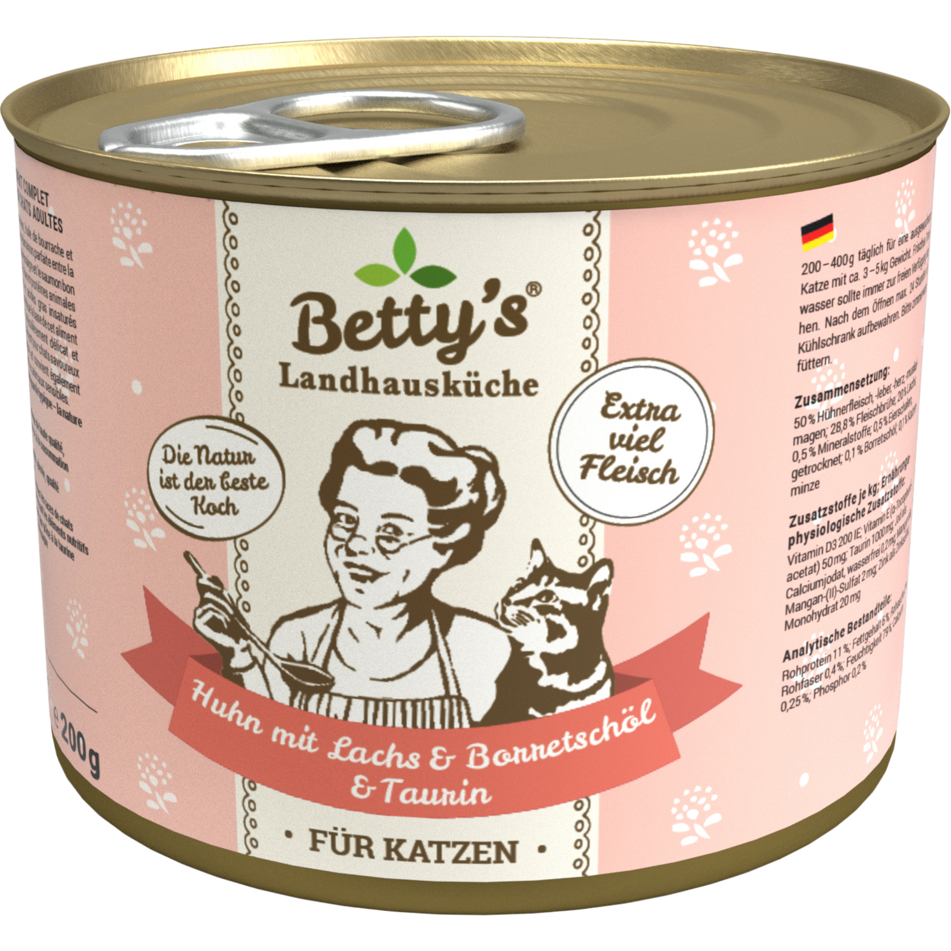 Dieses hochwertige Nassfutter kombiniert mageres Hühnerfleisch mit wertvollem Lachs zu einem besonders ausgewogenen und aromatischen Menü für anspruchsvolle Katzen. Die perfekte Verbindung aus Fleisch und Fisch sorgt für hohe Akzeptanz, beste Bekömmlichkeit und ein natürliches Geschmackserlebnis.