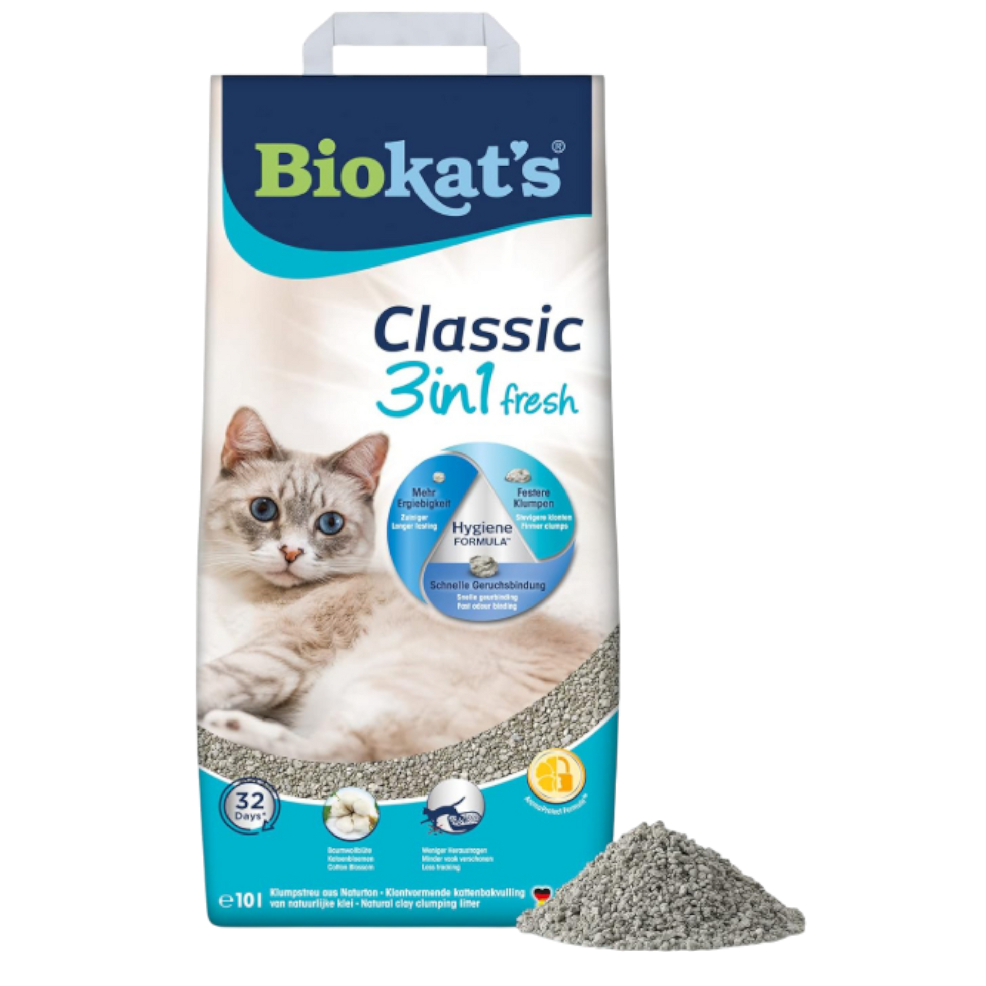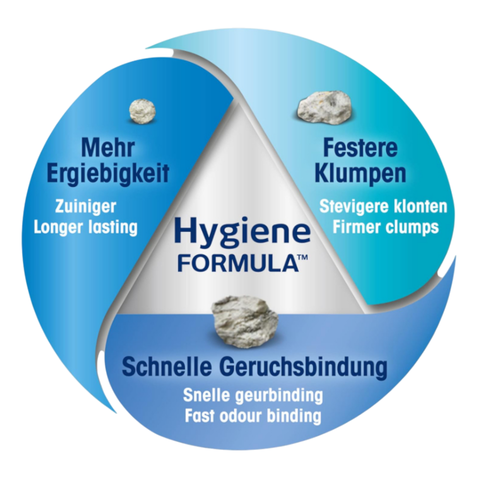 Das bewährte 3-in-1 Hygiene-Granulat kombiniert drei Korngrößen für maximale Leistung: