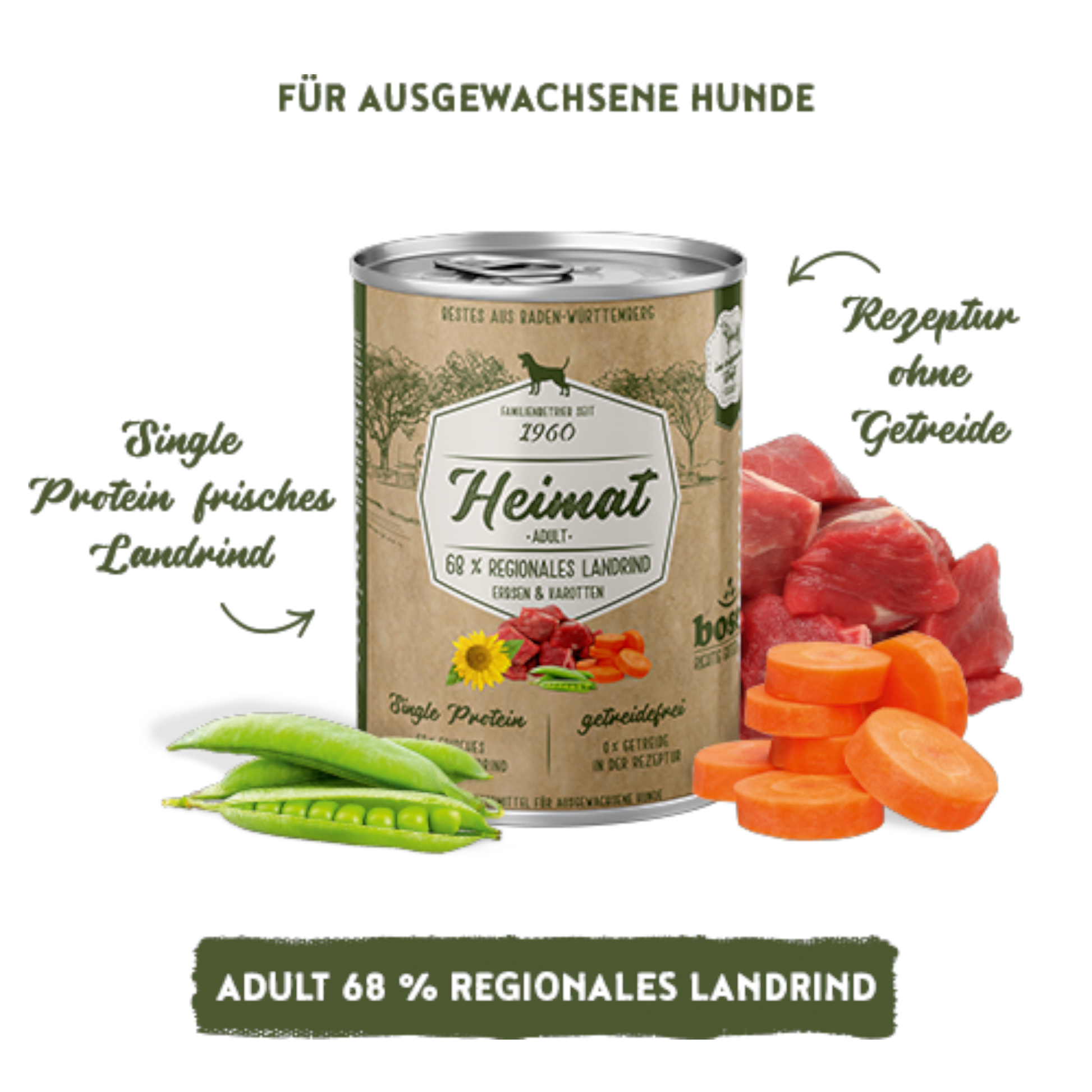 Single Protein | Getreidefrei | Nassfutter für sensible, ausgewachsene Hunde. Ein hochwertiges Nassfutter für Hunde mit besonderen Ernährungsansprüchen – klar fokussiert auf Verträglichkeit, Regionalität und Qualität.