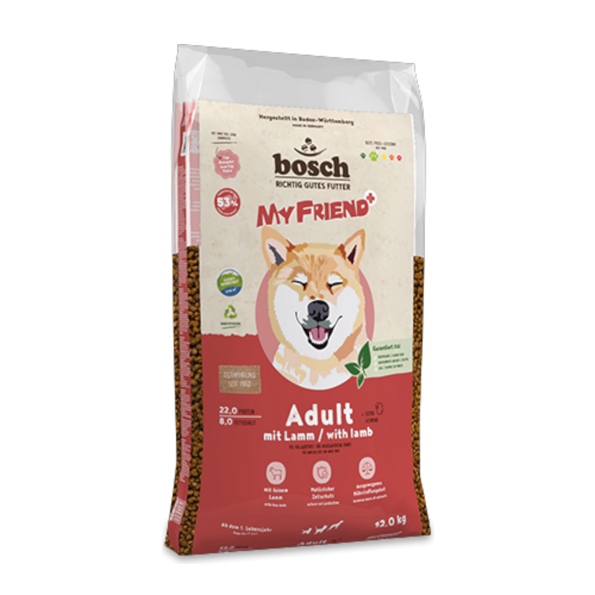 bosch My Friend+ Adult mit Lamm ist eine ausgewogene Vollnahrung für ausgewachsene Hunde – unabhängig von Rasse, Größe oder individuellen Besonderheiten. Die Rezeptur kombiniert eine zuverlässige Basisversorgung mit feinem Lamm als besonders schmackhafte und gut verdauliche Proteinquelle.