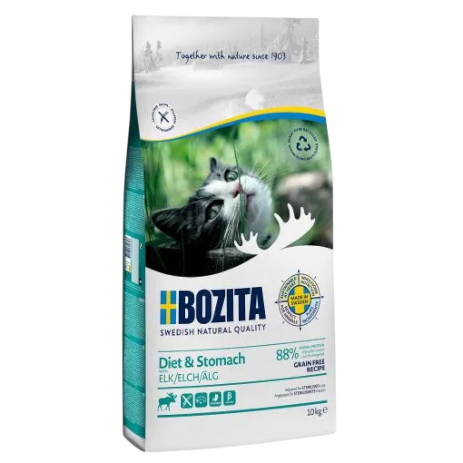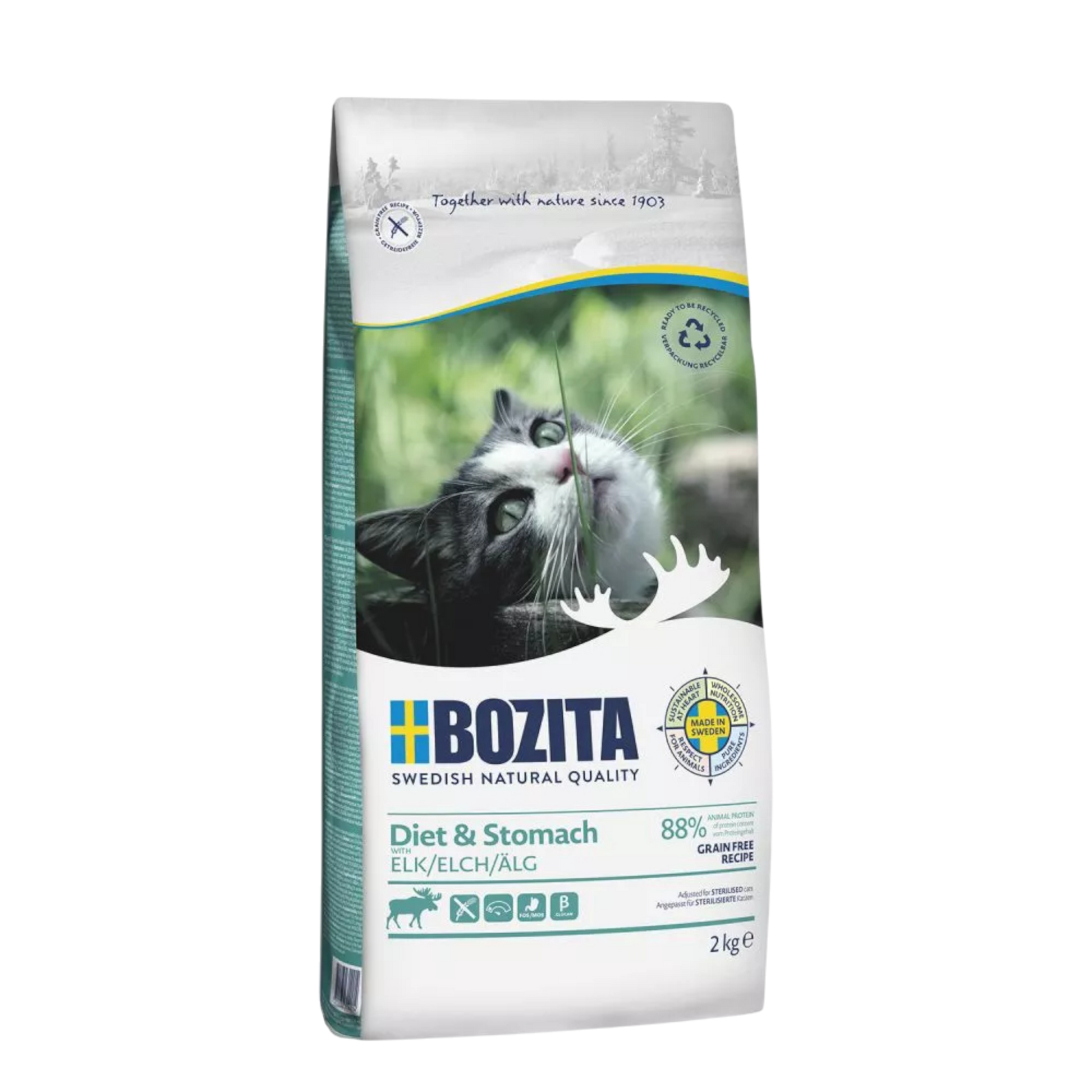 Klar positioniert auf Magenverträglichkeit, Gewichtskontrolle und Regeneration. Diese getreidefreie Trockennahrung wurde gezielt für Katzen mit empfindlichem Magen, sensibler Haut oder reduziertem Aktivitätslevel entwickelt. Der niedrige Fettgehalt, kombiniert mit funktionalen Inhaltsstoffen und frisch zubereitetem Elch, macht dieses Futter zu einer zuverlässigen Lösung für anspruchsvolle Ernährungsanforderungen – kontrolliert, wirksam und schmackhaft.
