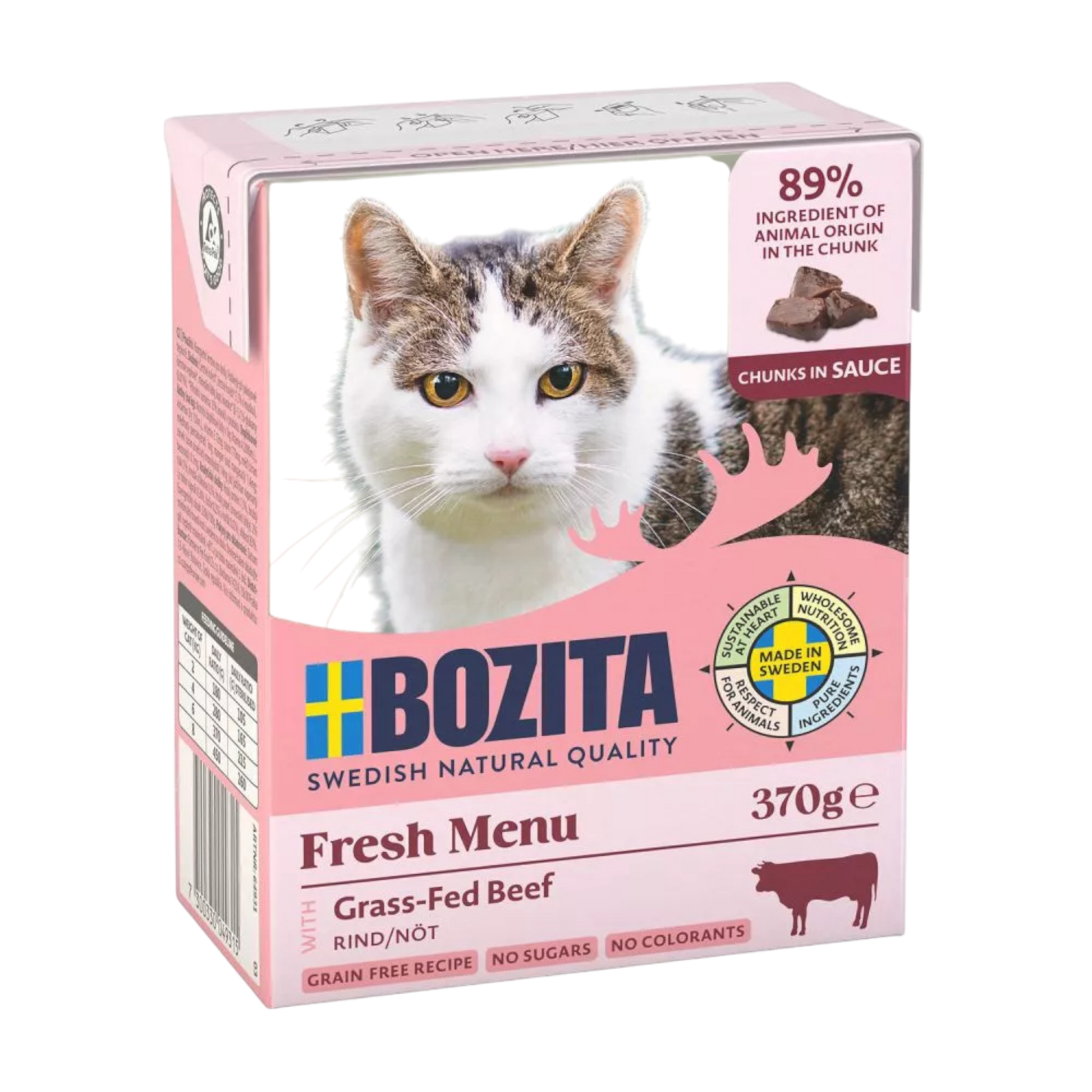 Klar positioniert auf Qualität, Herkunft und Akzeptanz. Diese Rezeptur vereint schmackhaftes Rindfleisch mit einem hohen Fleischanteil und reduziertem Fettgehalt. Das Ergebnis: saftige Häppchen in Soße, die erwachsene Katzen überzeugen und gleichzeitig eine vollwertige, ausgewogene Versorgung sicherstellen – leistungsfähig, bekömmlich und konsequent natürlich.