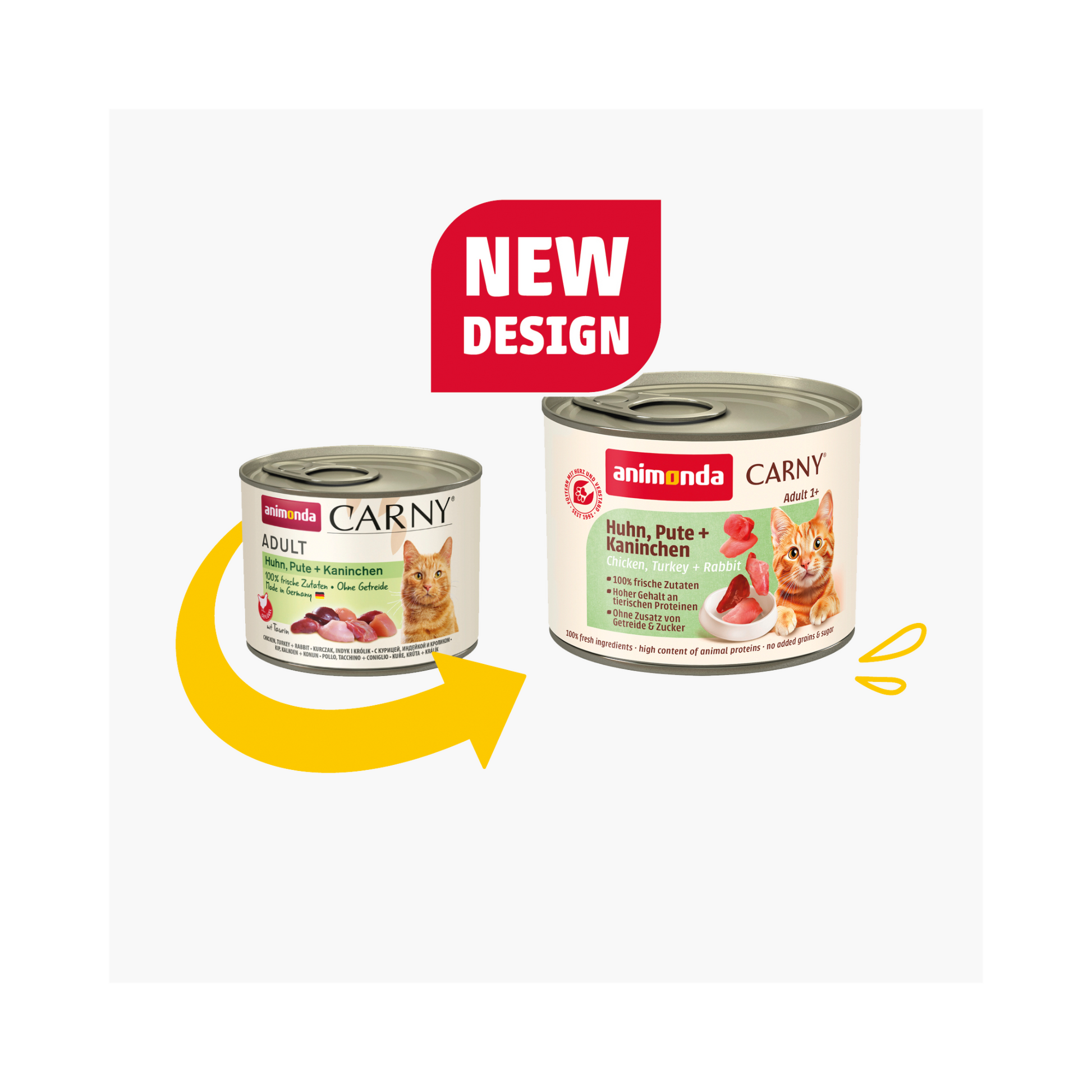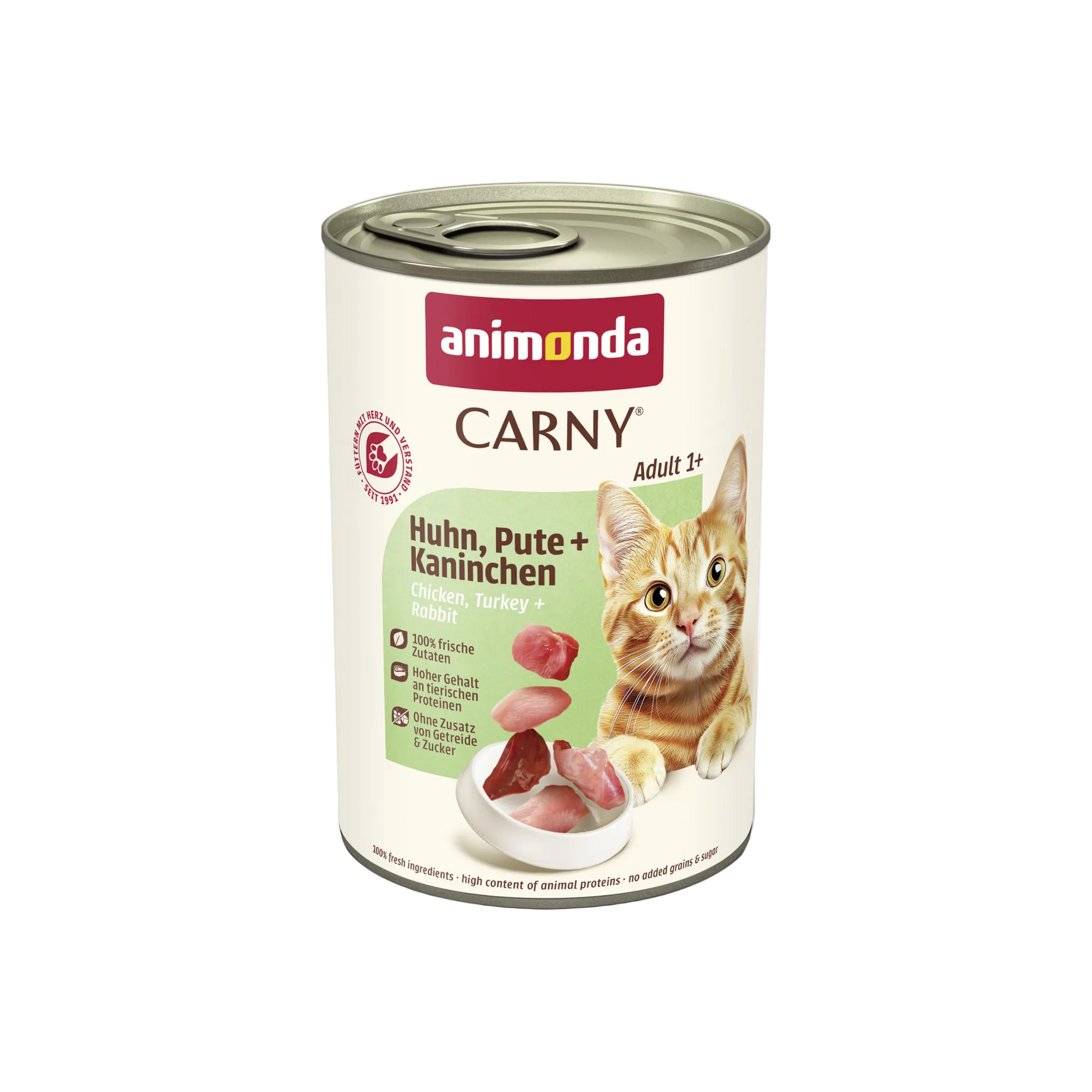 Carny Adult Huhn, Pute + Kaninchen vereint hochwertige Fleischvielfalt mit optimaler Verträglichkeit. Eine durchdachte, ehrliche Premium-Mahlzeit für Katzenhalter, die auf Qualität, Transparenz und nachhaltigen Genuss im Napf setzen.