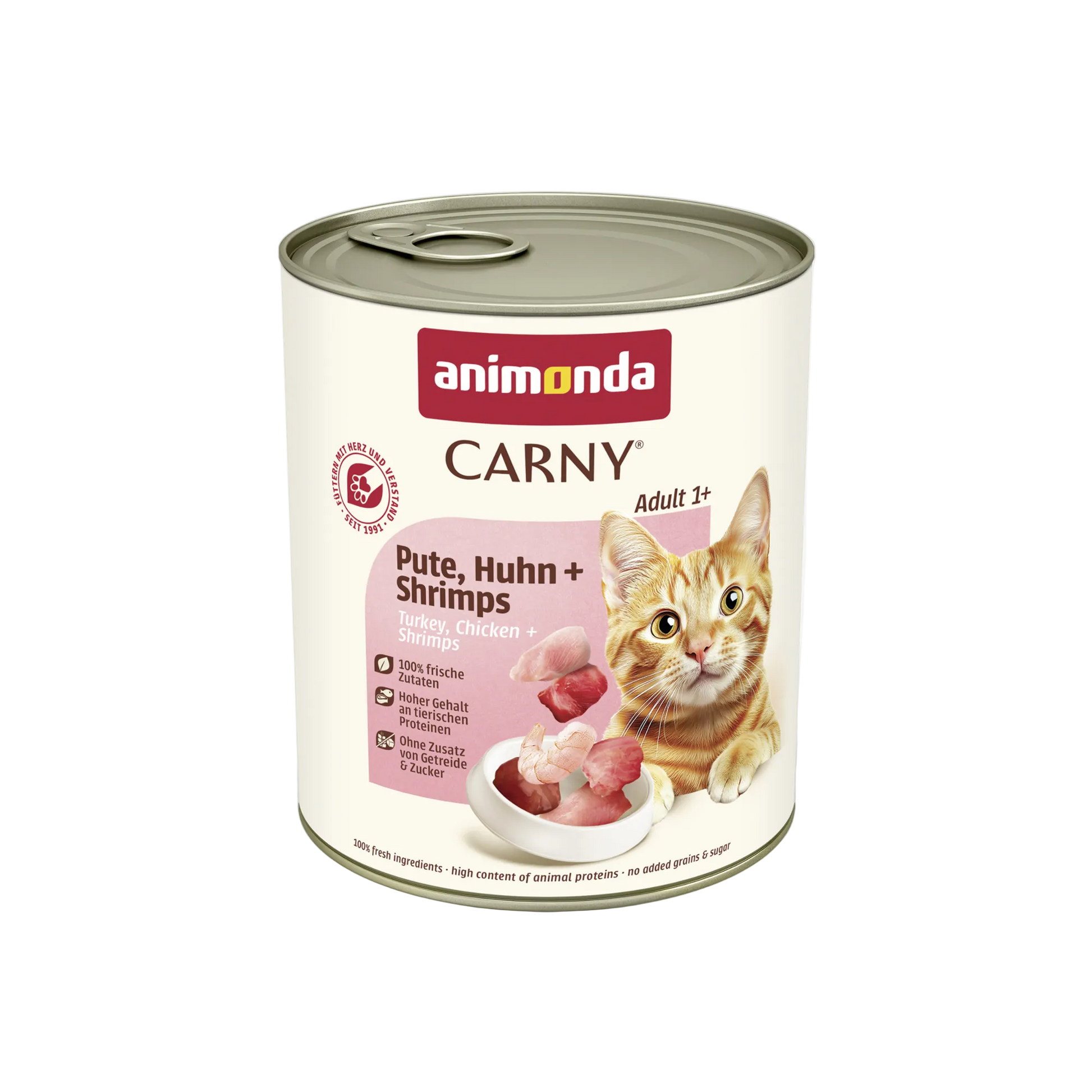 - Hochwertige Proteinquellen aus Pute, Huhn und Shrimps