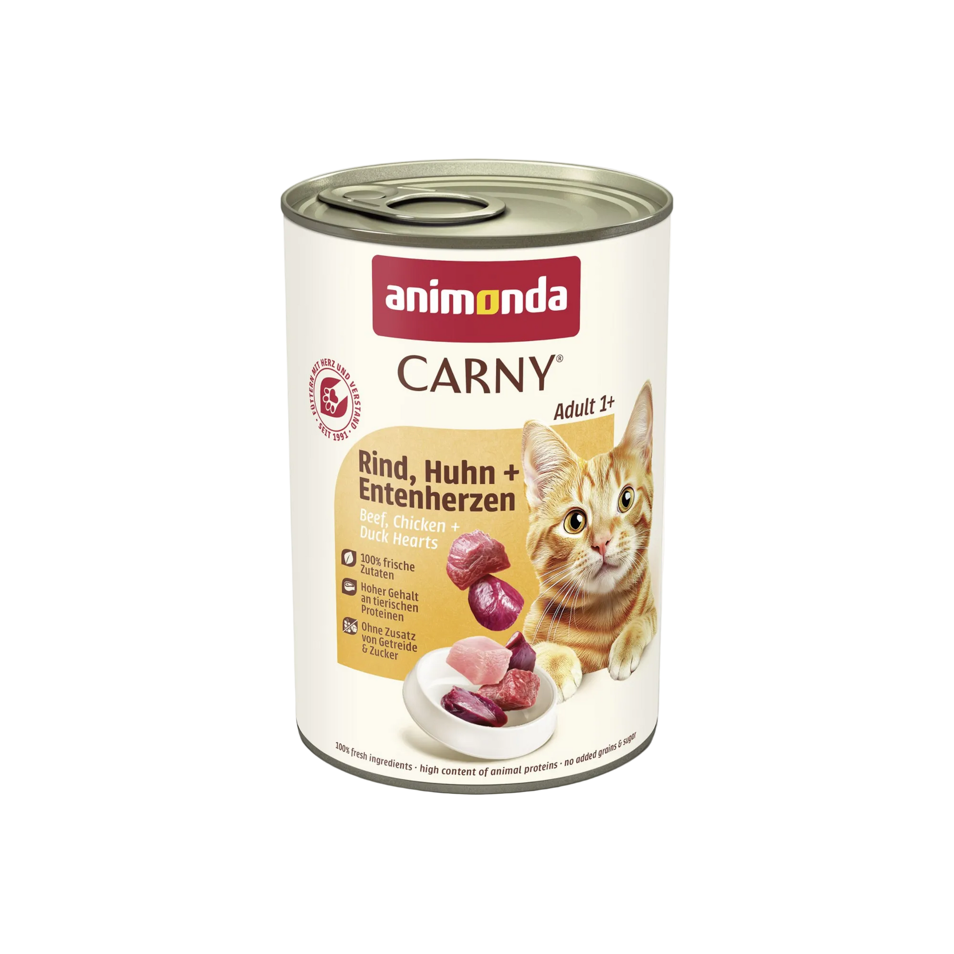 Carny Adult Rind, Huhn + Entenherzen liefert ehrlichen Fleischgeschmack, hohe Akzeptanz und eine ausgewogene Nährstoffversorgung. Die ideale Wahl für Katzenhalter, die auf natürliche Zutaten, klare Deklaration und echten Fleischgenuss setzen.