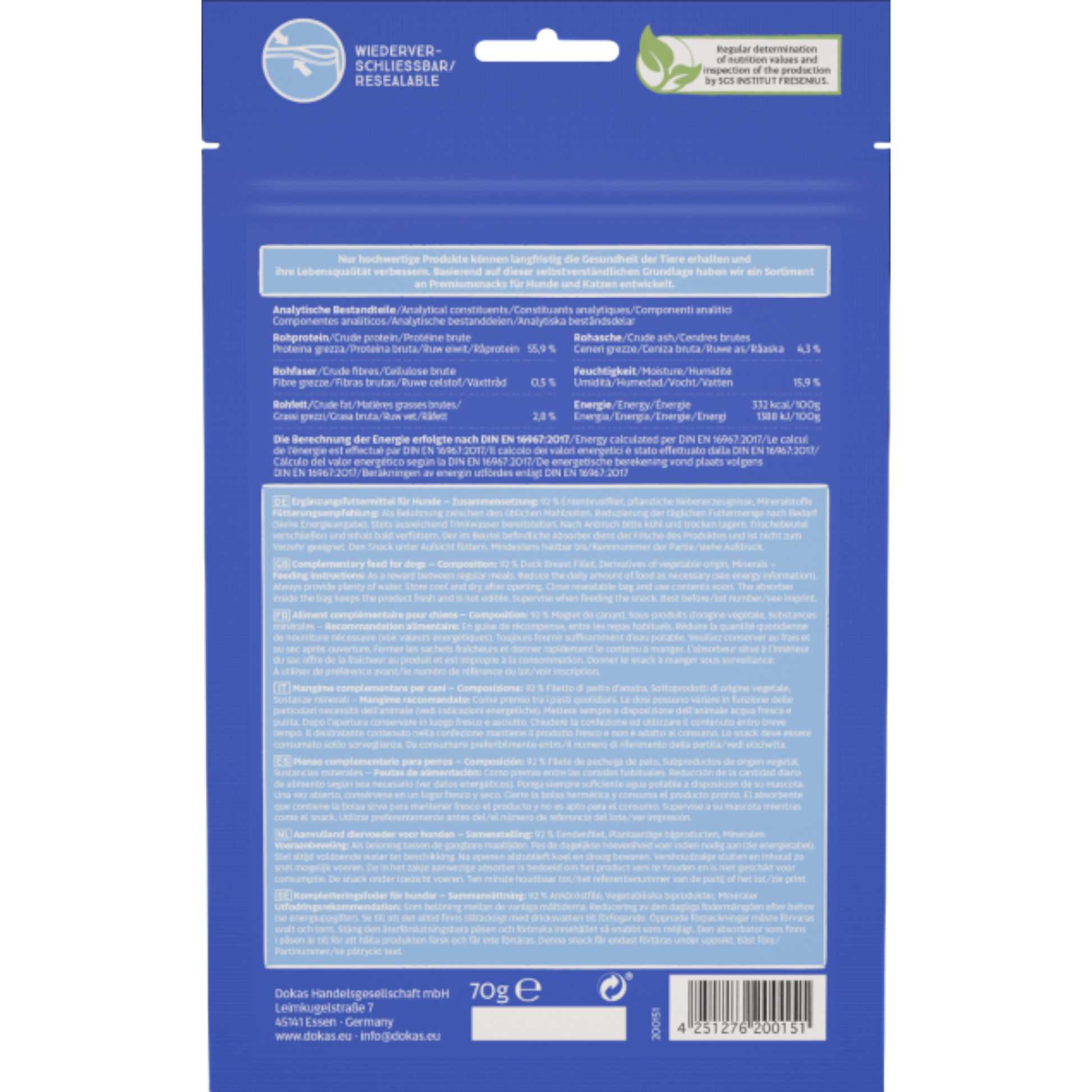 Der Dokas Dog Snack Entenbrust getrocknet bietet ein besonders intensives Geschmackserlebnis – gefertigt aus hochwertigem Entenbrustfilet und schonend luftgetrocknet, um natürlichen Fleischgeschmack und wichtige Nährstoffe zu erhalten 🦆✨
