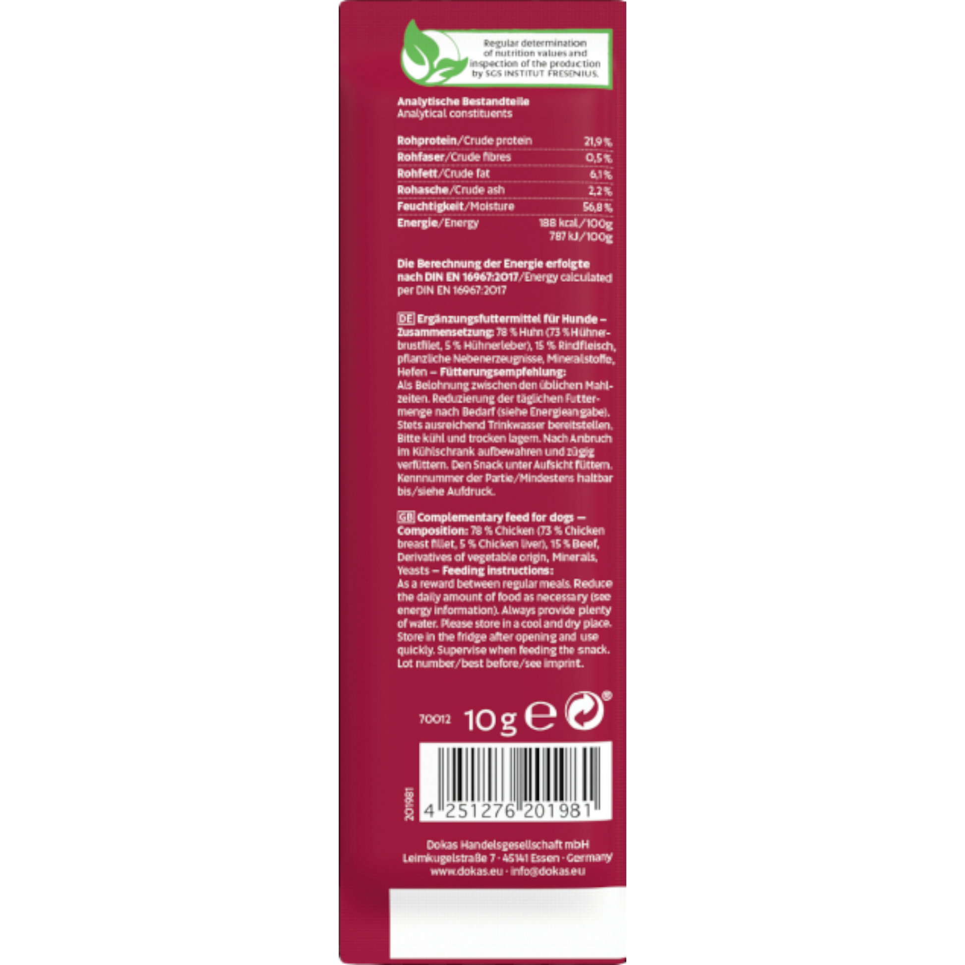 Die Dokas Dog Snack Hühnchen-Rolle mit Rind ist ein besonders schmackhafter Mini-Snack, der aus zartem Hühnerfleisch besteht und im Inneren eine herzhafte Rindfüllung trägt. Die Kombination aus mildem Huhn und kräftigem Rind sorgt für ein intensives Geschmackserlebnis, das selbst wählerische Hunde begeistert 🐾✨