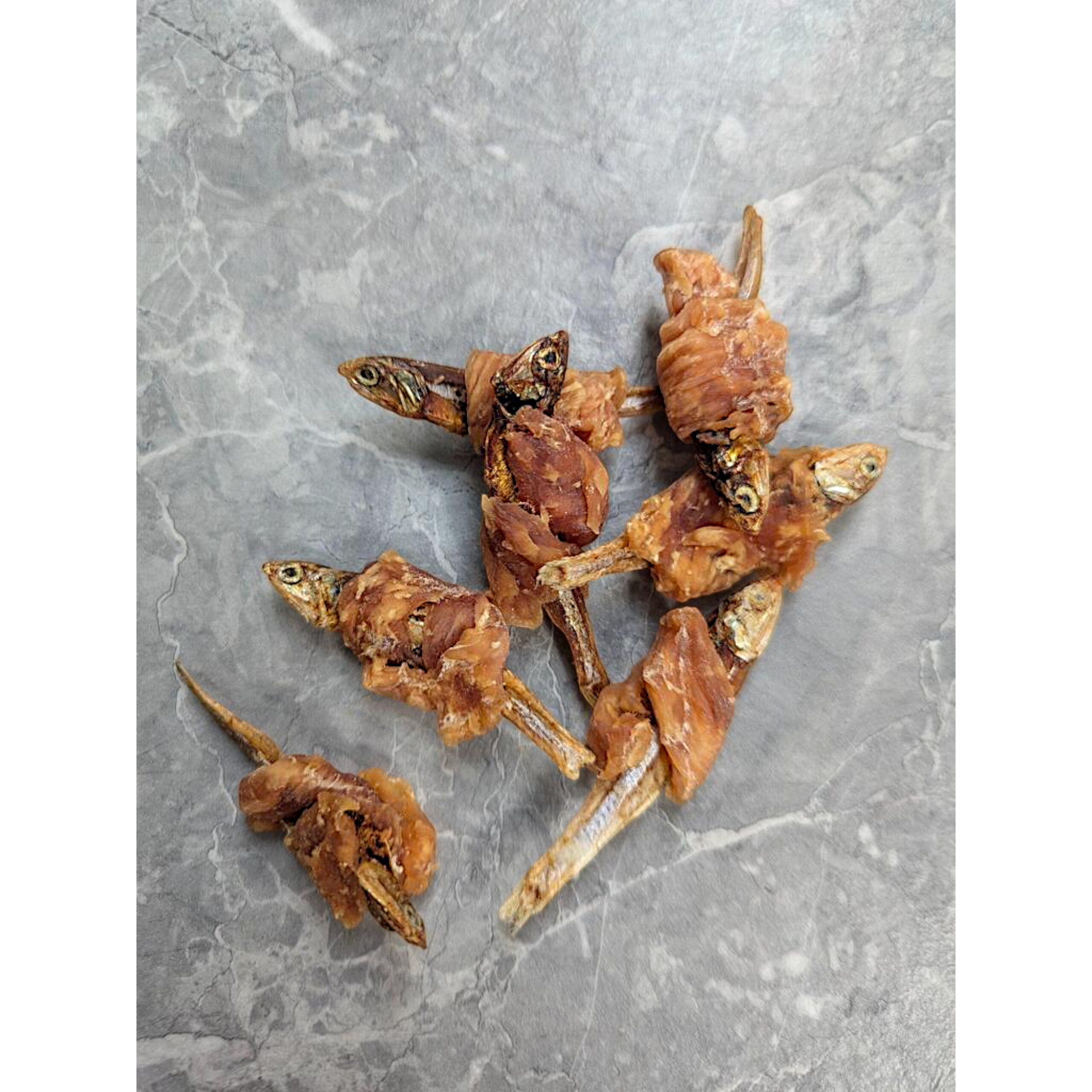 Fisch liefert wertvolle Omega-Fettsäuren, während Hühnerbrust eine magere, leicht verdauliche Proteinquelle ist. Diese Kombination macht den Snack besonders verträglich und damit ideal für Hunde mit empfindlicher Verdauung oder für Vierbeiner, die hochwertige tierische Proteine benötigen.