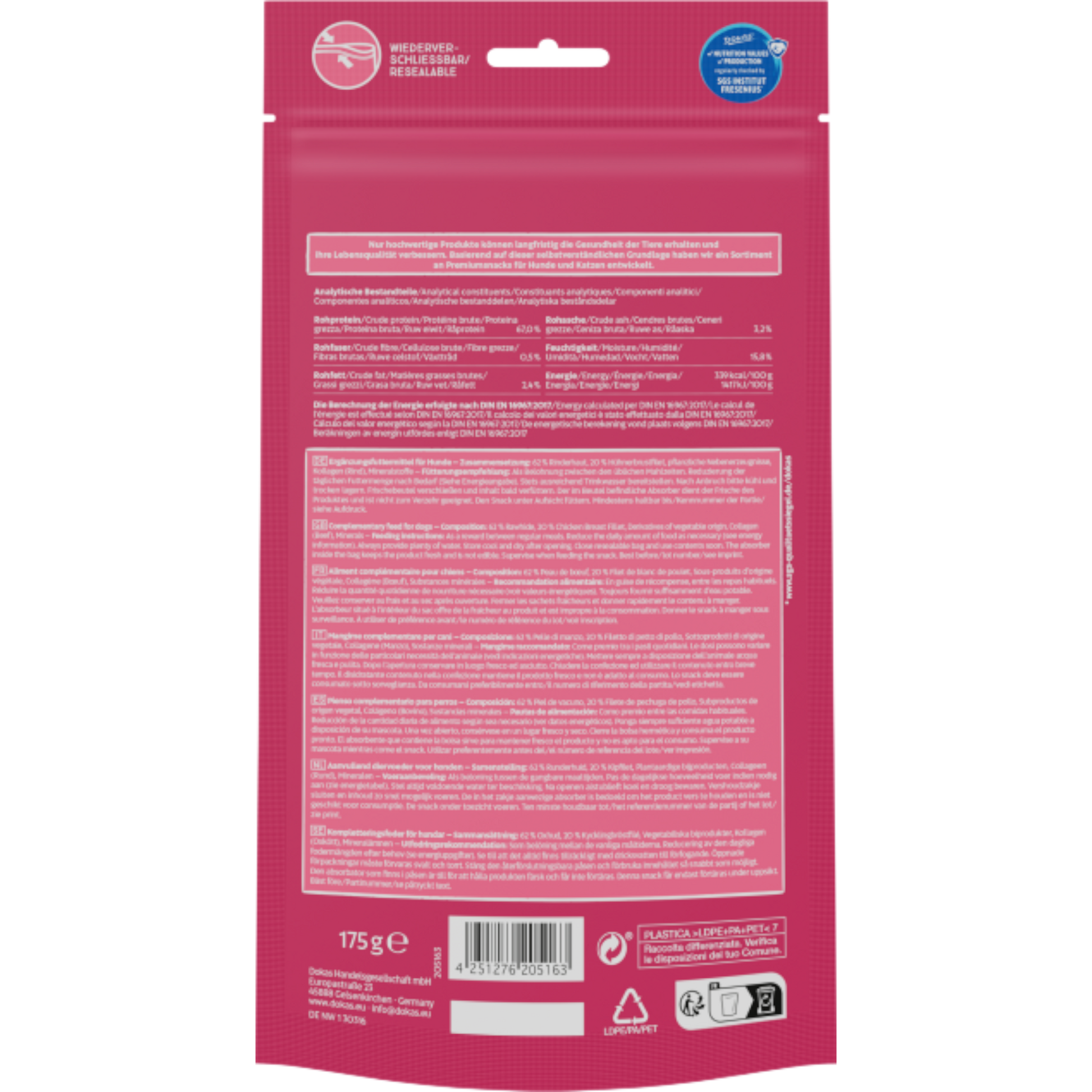 Die Kauchips liefern eine angenehme Beschäftigung, fördern die Zahnpflege und lassen sich hervorragend als kleiner Kausnack zwischendurch einsetzen. Der wiederverschließbare Frischebeutel hält sie lange knusprig und aromatisch.