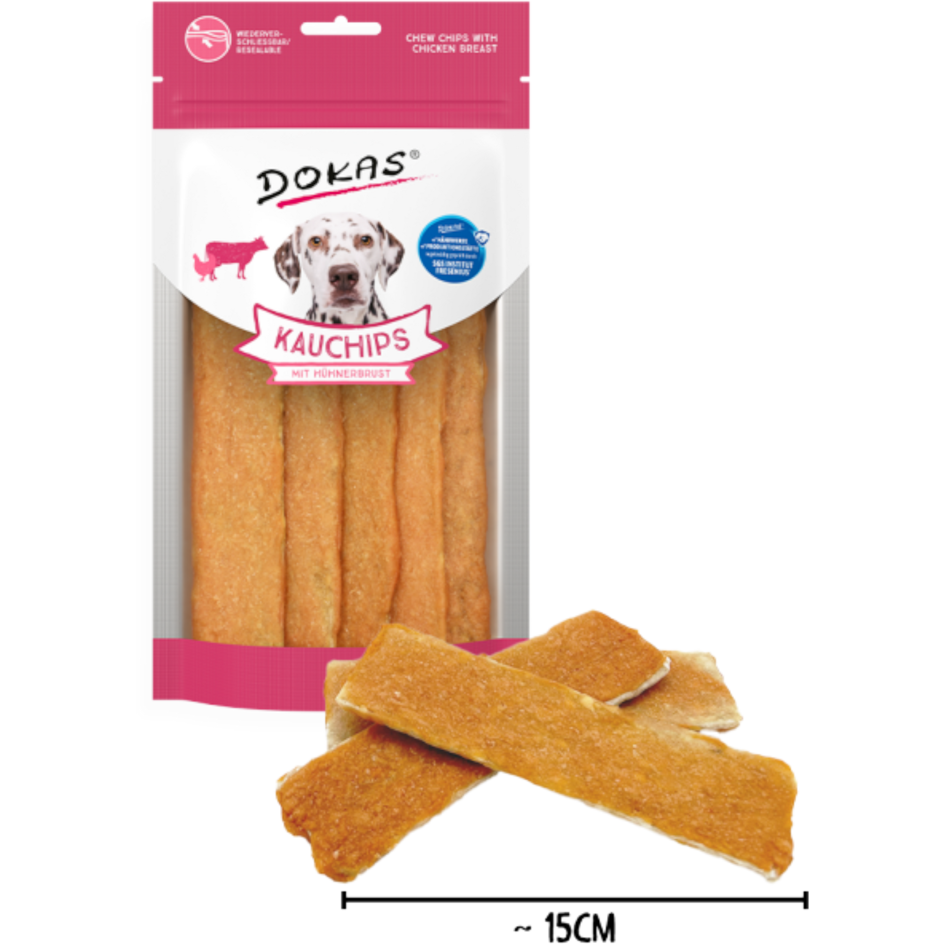 Die Dokas Dog Snack Kauchips Hühnerbrust vereinen knusprige, dünne Chips aus hochwertiger Rinderhaut mit einer schmackhaften Ummantelung aus feiner Hühnerbrust. Diese Kombination sorgt für ausgewogenen Kauspaß, der gleichzeitig aromatisch und gut verträglich ist – ideal für Hunde, die leichte, aber dennoch befriedigende Kauartikel bevorzugen 🐾💛