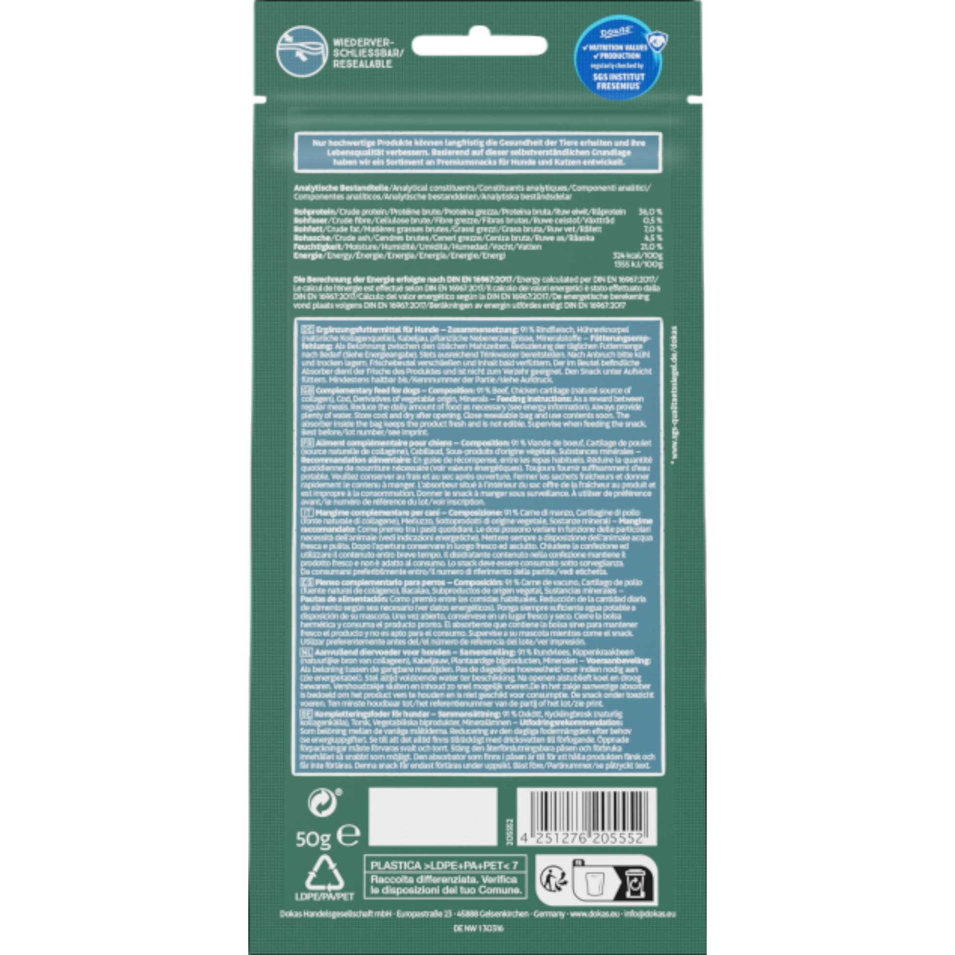 Die Dokas Dog Snack Mini Steaks Rindfleisch bieten intensiven Fleischgeschmack in kompakter, weicher Mini-Form. Gefertigt aus hochwertigem Rindfleisch, überzeugen die Snacks durch ihre weiche Konsistenz, hohe Akzeptanz und fettarme Rezeptur – ideal für Training, Beschäftigung und kleine Belohnungsmomente im Alltag 🐾💛