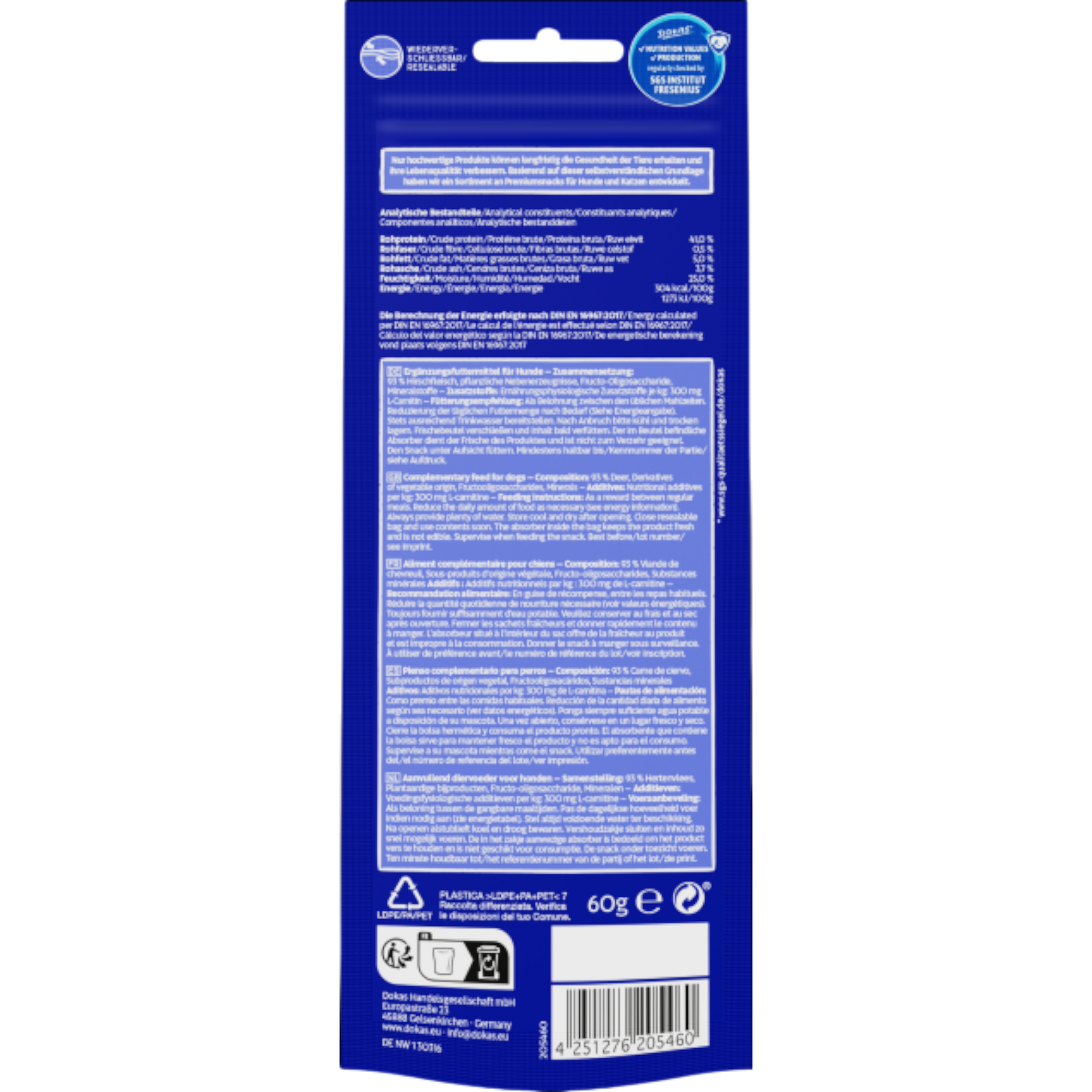Die Dokas Dog Snack Minis Hirschfleisch bestehen aus kleinen, weichen Fleischstückchen aus hochwertigem Hirschfleisch. Hirsch zählt zu den besonders gut verträglichen, hypoallergenen Proteinquellen und eignet sich perfekt für Hunde mit Futtermittelunverträglichkeiten oder empfindlicher Verdauung 🐾💛