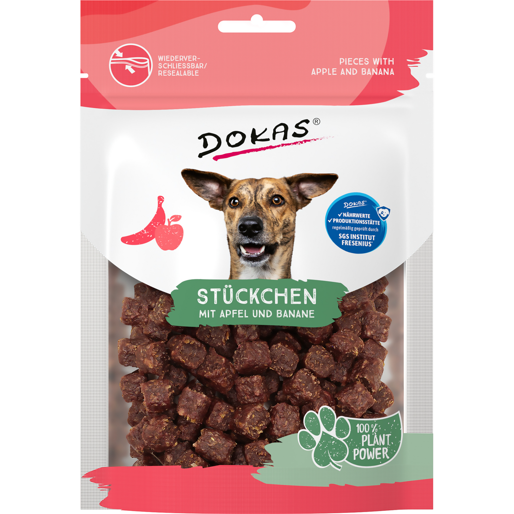 Die Dokas Stückchen mit Apfel & Banane bieten eine köstliche Verbindung aus zartem Fleisch und fruchtigen Komponenten. Die kleinen, soft-kaubaren Würfel sind perfekt geeignet für Hunde, die aromatische, leicht süßliche Snacks lieben 🐾💛