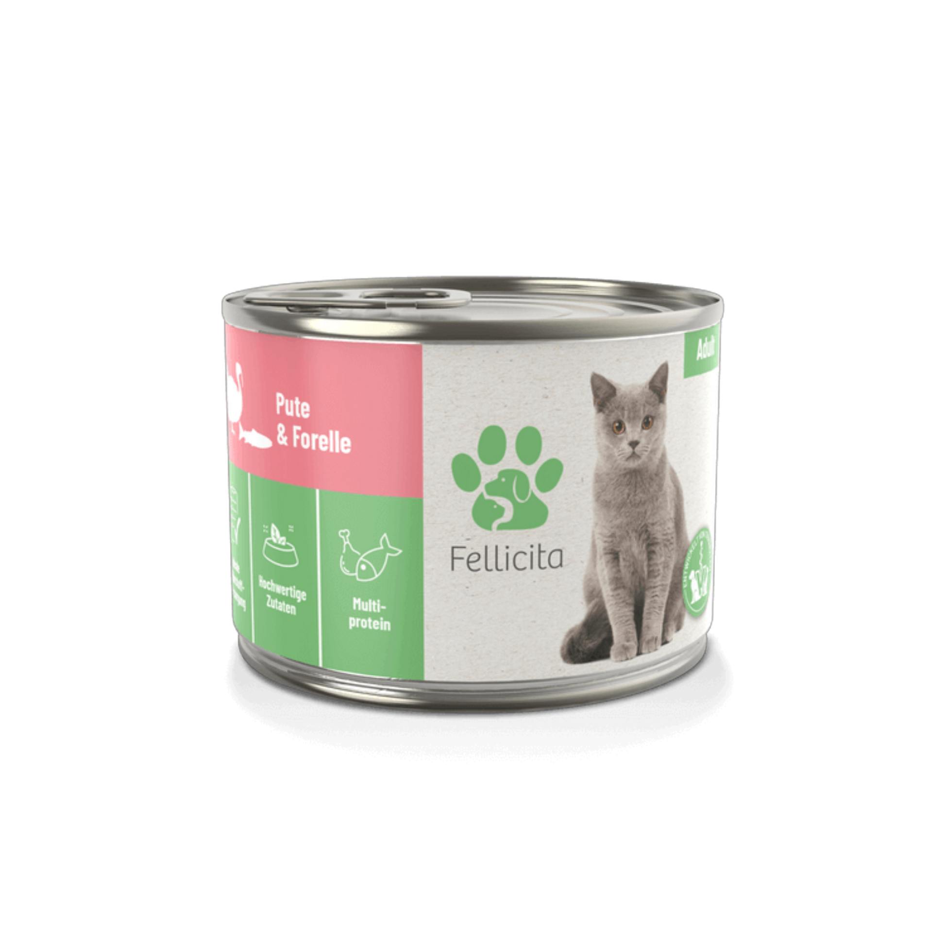 Mit Pute & Forelle servierst du deiner Katze eine besonders feine Pastete, die geschmacklich überzeugt und ernährungsphysiologisch punktet. Die Kombination aus zartem Geflügel und hochwertigem Fisch liefert wertvolle Proteine, natürliche Fettsäuren und eine optimale Nährstoffvielfalt– perfekt für ausgewachsene Katzen, die Abwechslung im Napf schätzen.