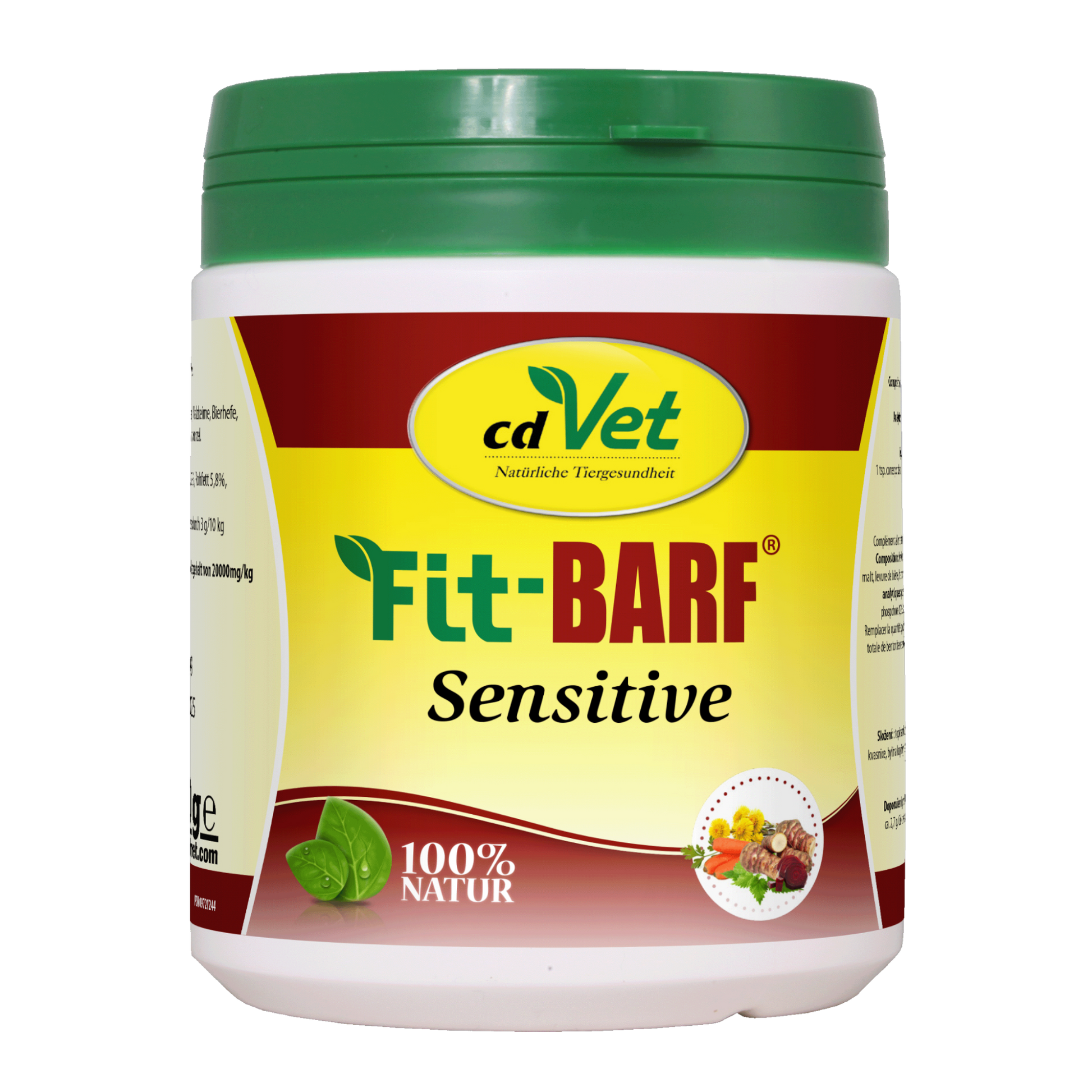 Fit-BARF Sensitive setzt auf eine fein abgestimmte Kombination aus schonend getrocknetem Gemüse und Kräutern – ideal für Hunde und Katzen mit sensibler Verdauung, Allergien oder besonderen Stoffwechselanforderungen.