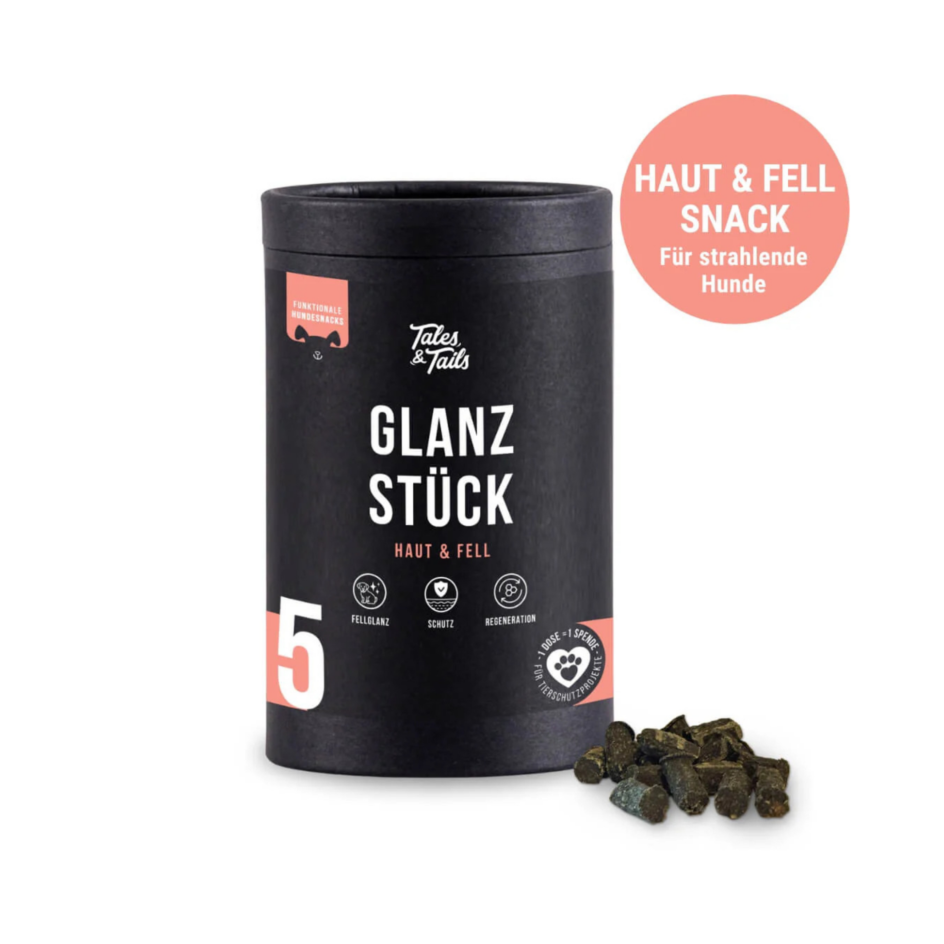 Unser „Glanzstück“ ist die tägliche Portion Schönheitspflege für deinen Hund – natürlich, lecker und wirkungsvoll.