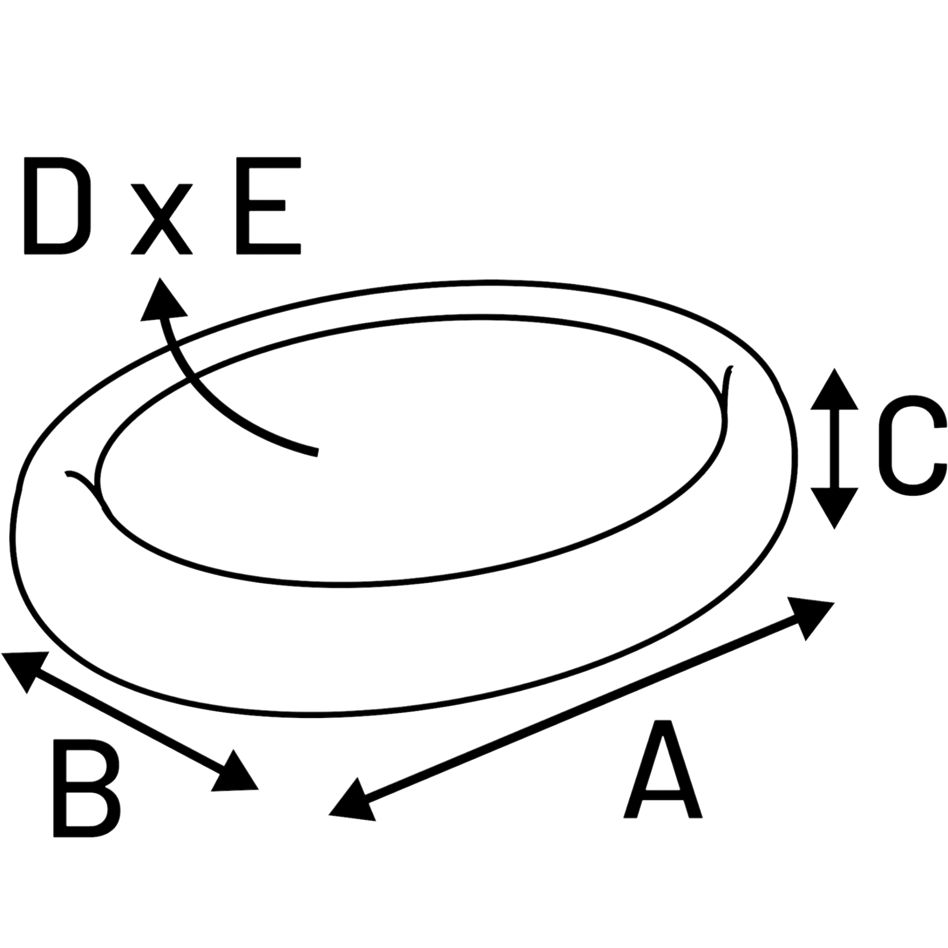 - M: A 55 cm | B 42 cm | C 7 cm | D 45 cm | E 32 cm