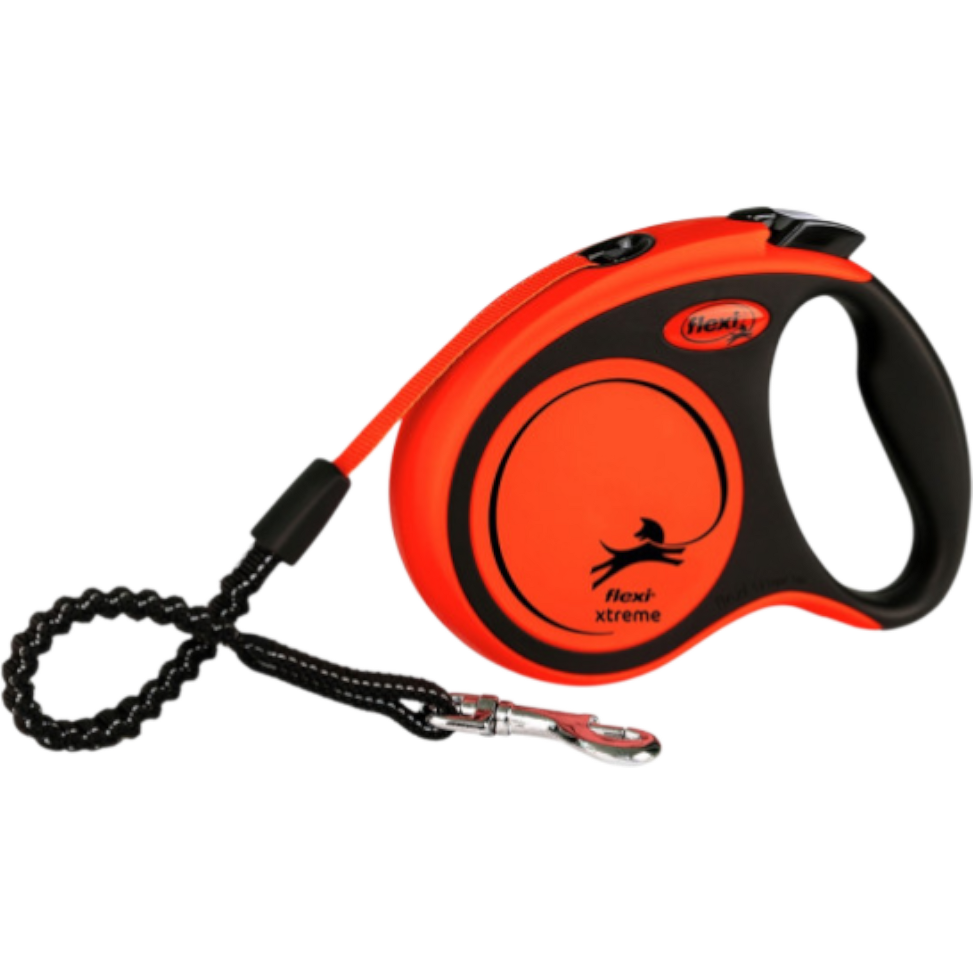 Mit einem Leinengewicht von ca. 246 g liegt die Flexi Xtreme angenehm in der Hand und ist optimal geeignet für Hunde bis 20 kg. Das sportliche Design in Schwarz/Orange unterstreicht die leistungsstarke Ausrichtung dieser Rollleine.
