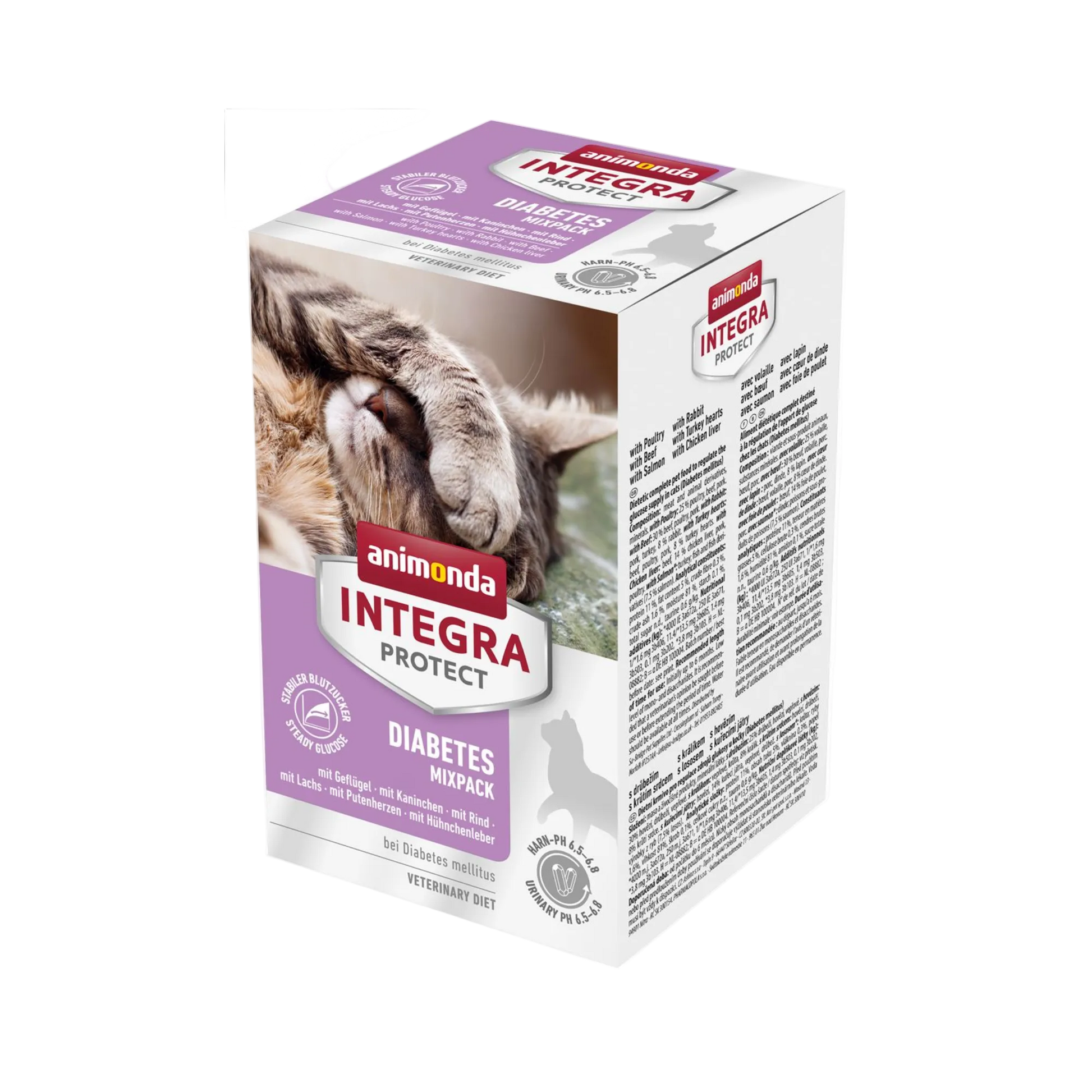 Der Diabetes Mixpack liefert einen effizienten Vorrat an spezialisierten Diätnahrungen, die den Blutzuckerspiegel zuckerkranker Katzen stabil halten und gleichzeitig geschmacklich überzeugen. Das Paket bietet sechs Sorten – ideal, um Abwechslung zu schaffen und dennoch die diätetischen Vorgaben konsequent einzuhalten.