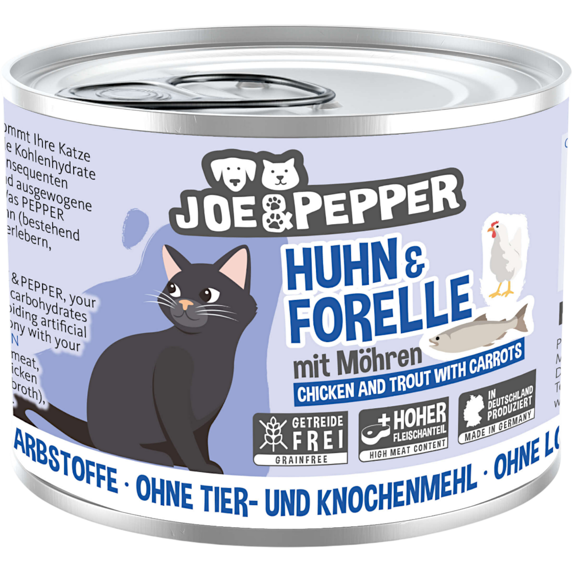 Dieses hochwertige Nassfutter von Joe & Pepper kombiniert saftiges Huhn mit feiner Forelle und wertvollen Möhren zu einem ausgewogenen, besonders schmackhaften Menü für ernährungsbewusste Katzen.