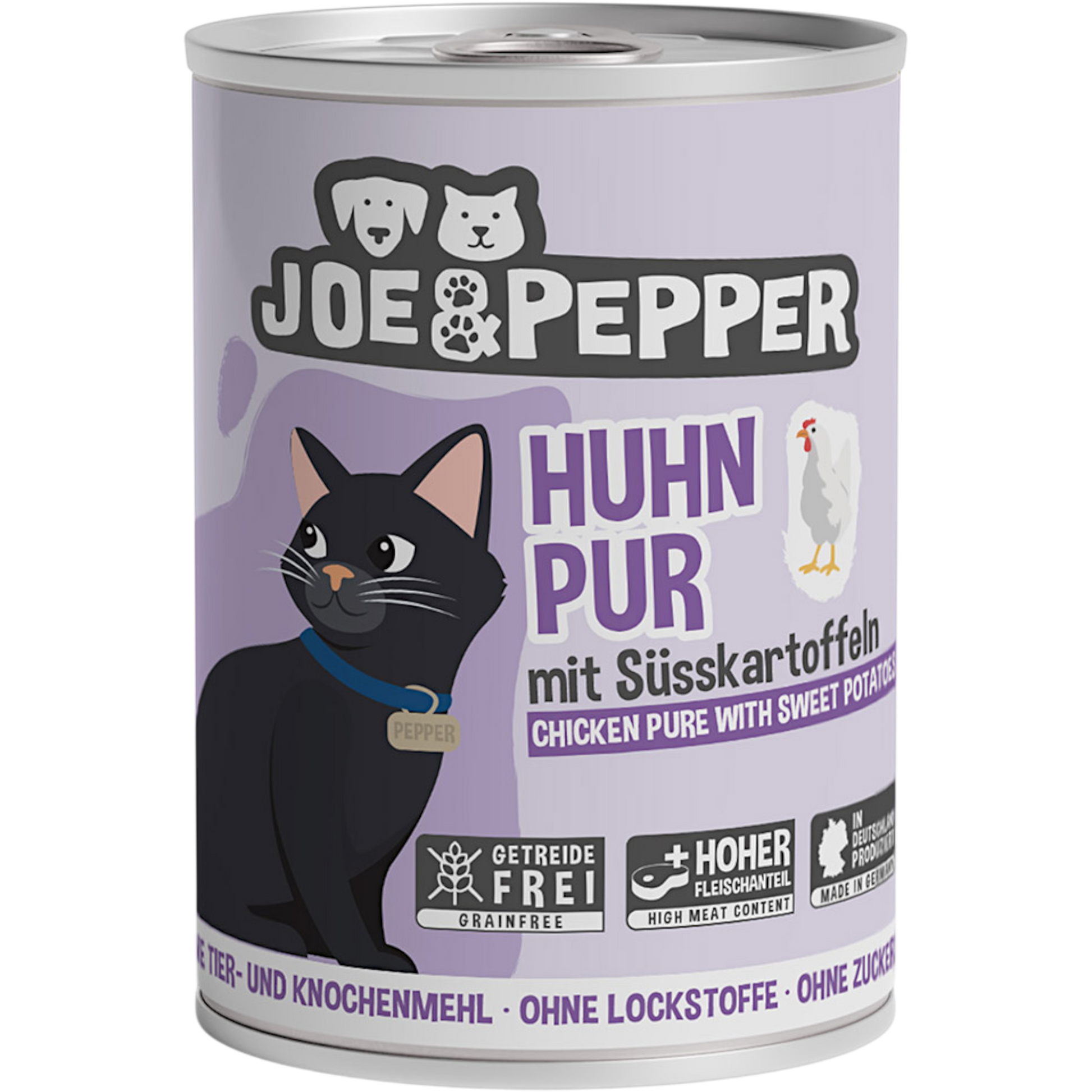 Dieses hochwertige Nassfutter von Joe & Pepper setzt auf reines, saftiges Huhn in Kombination mit bekömmlicher Süßkartoffel und bietet Ihrer Katze ein besonders natürliches, vollwertiges Menü.
