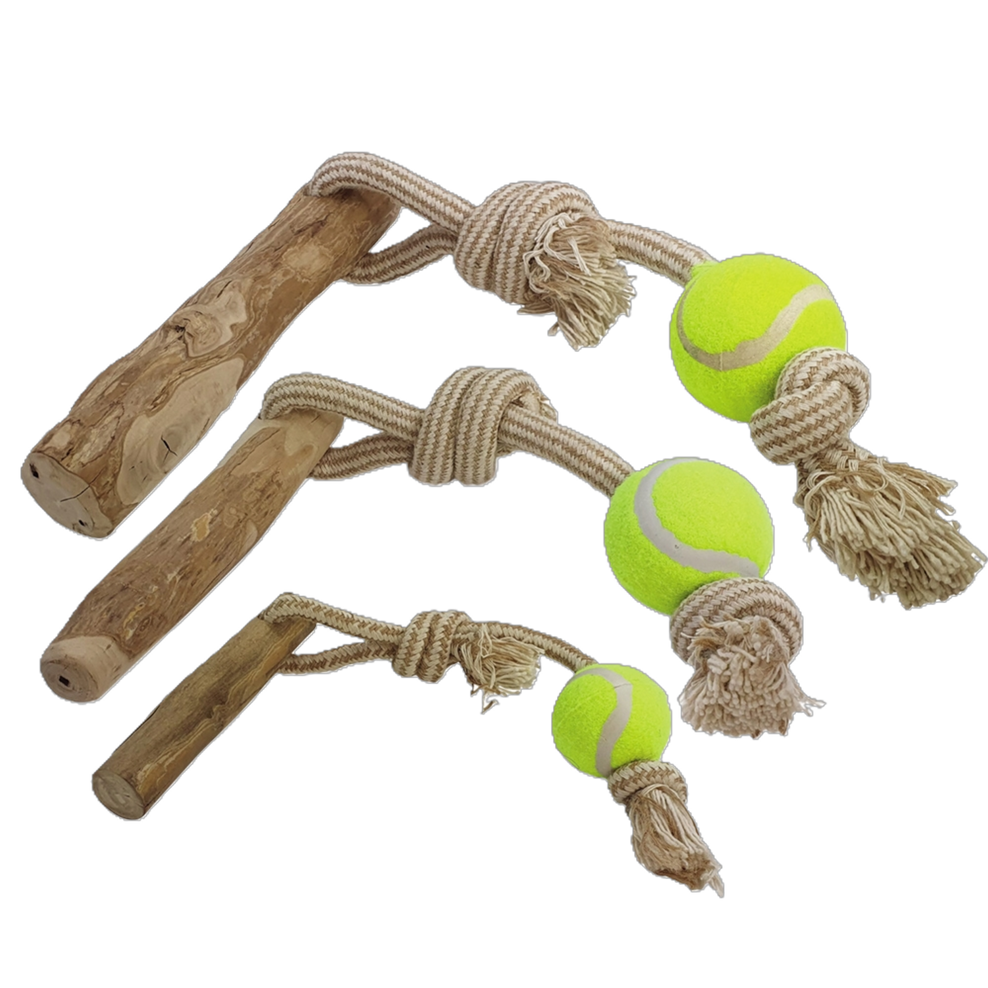 Unser Kaffeeholz mit Seil & Ball ist das ideale natürliche Kauspielzeug für Hunde, die gerne kauen, zerren und spielen! Gefertigt aus besonders hartem Holz des Kaffeebaums und kombiniert mit einem robusten Baumwoll-Hanfseil, bietet es gleich doppelt Beschäftigung – Kauen, Zerren und Spielen in einem.