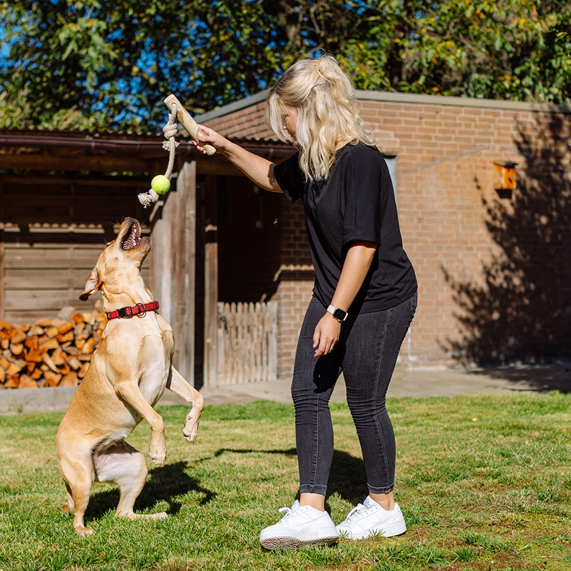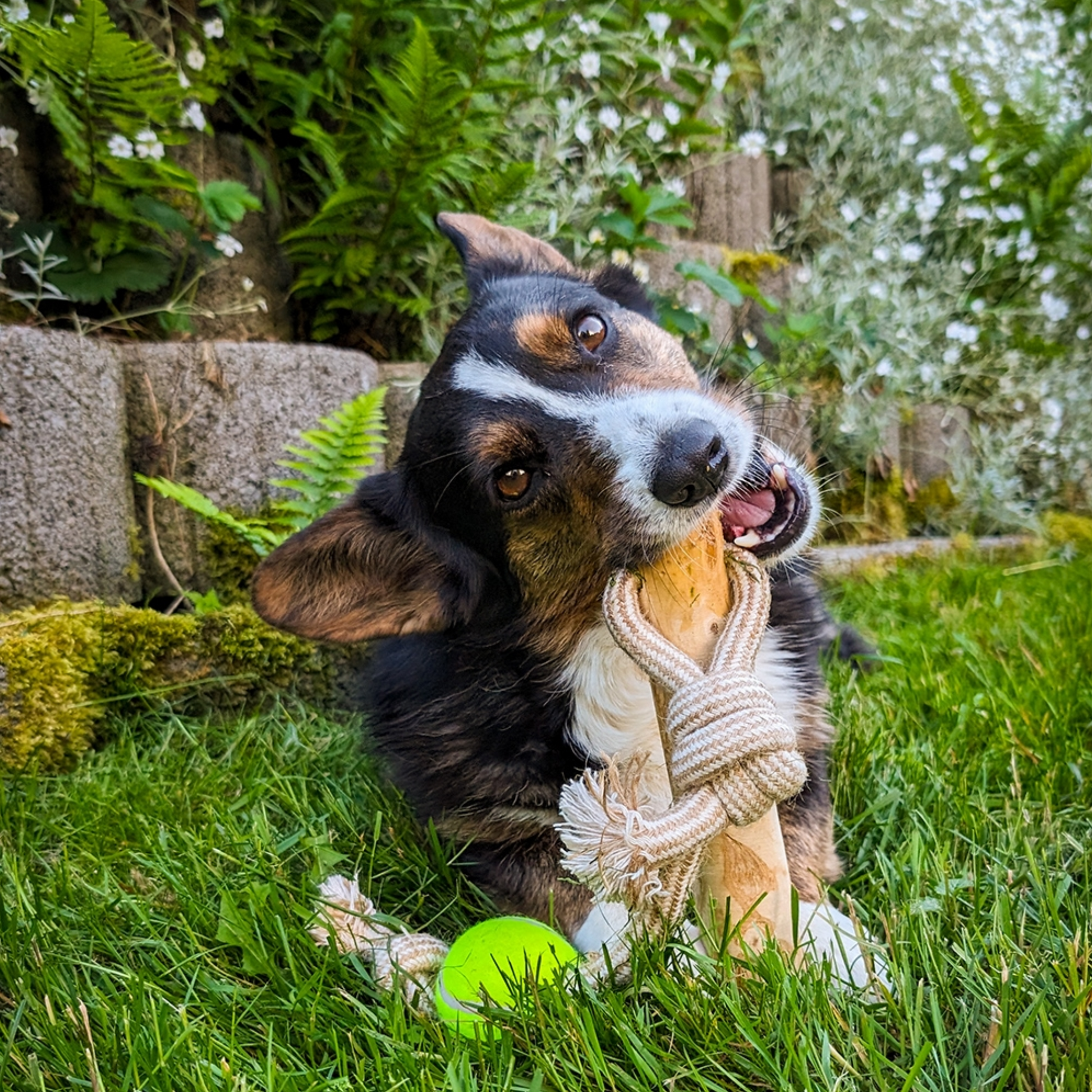 Verwende das Kaffeeholz nach einer aktiven Spielrunde mit dem Seil als entspannendes Kauspielzeug. Wenn du es kurz in Wasser tauchst, werden die Fasern weicher und der natürliche Geschmack noch interessanter für deinen Hund – für abwechslungsreichen, gesunden Kauspaß!