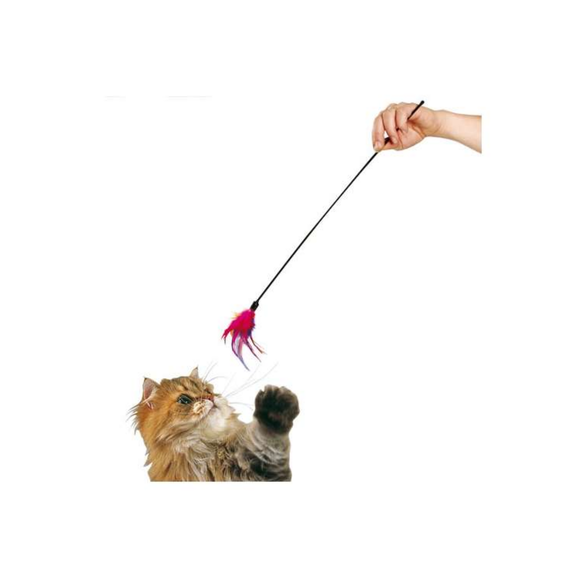 Mit einer Länge von ca. 60 cm bietet der Federwedel genügend Abstand, damit du bequem spielen kannst, während deine Katze voll eintaucht in ihre persönliche Mini-Safari.