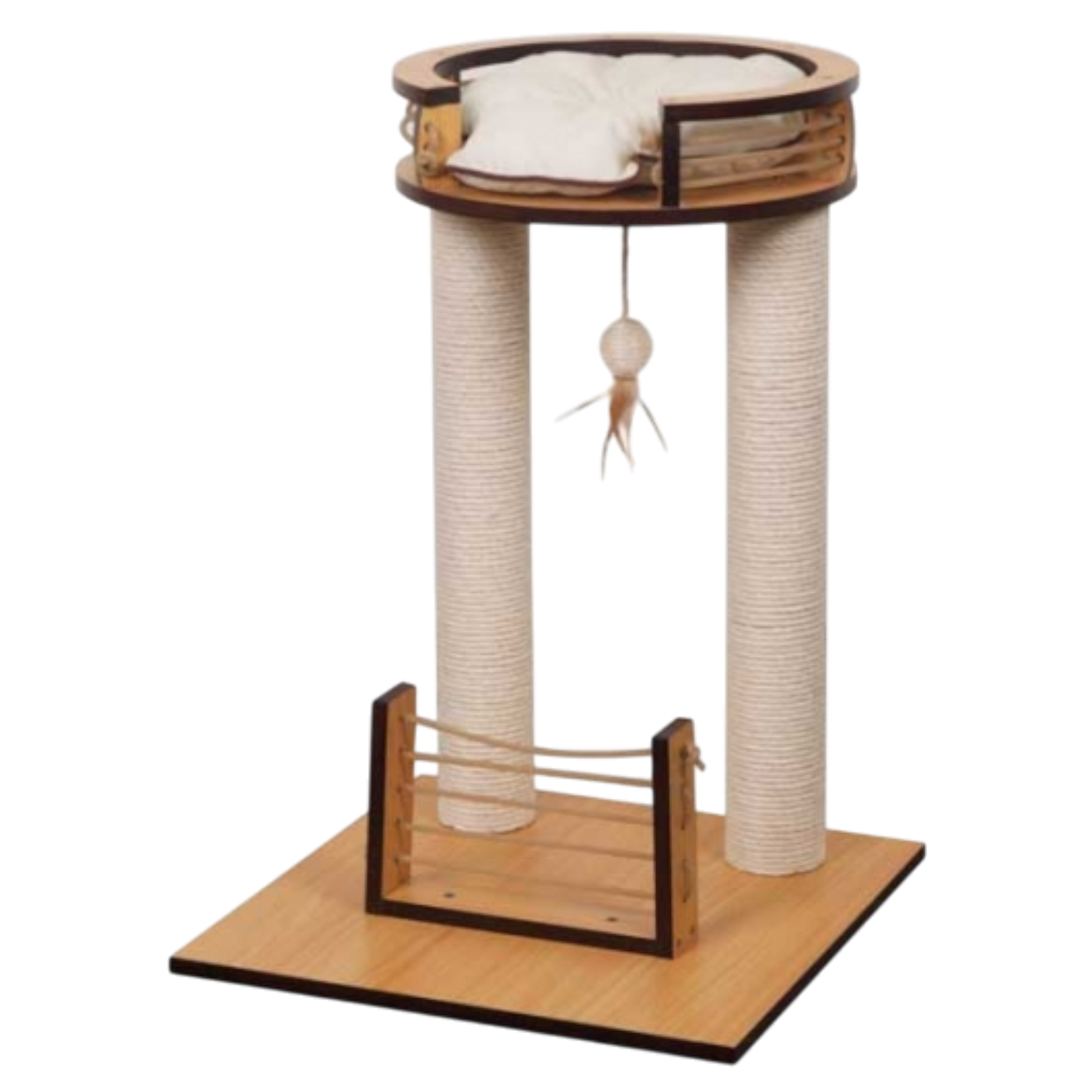 Er vereint Kratzbaum, Spielplatz und gemütliches Bett in einem durchdachten Möbelstück – perfekt für Katzen, die Abwechslung, Komfort und Beschäftigung lieben.