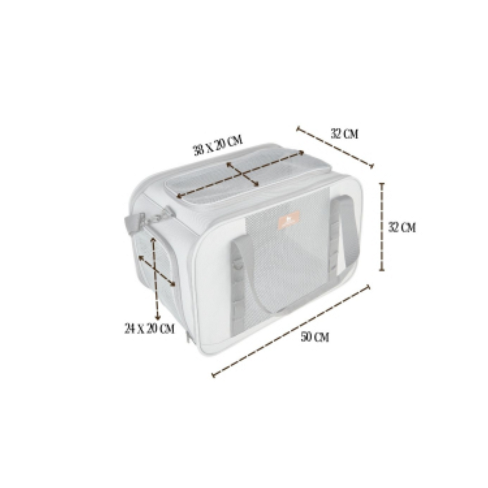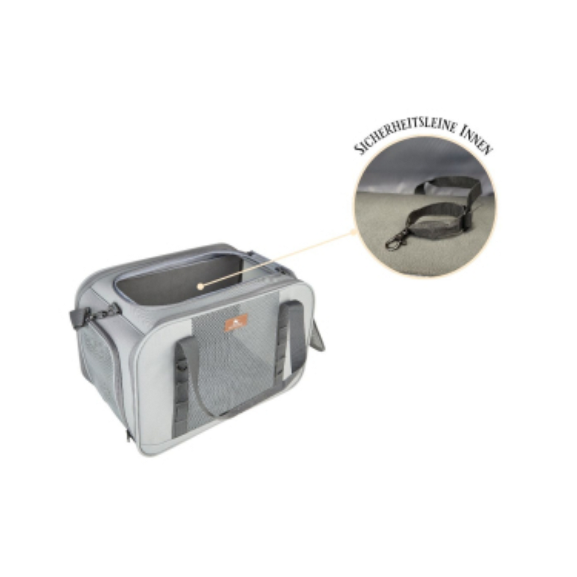 Drei große Mesh-Einsätze sorgen für optimale Belüftung und eine freie Rundumsicht. Gleichzeitig lassen sich Front- und Oberseite bequem per Reißverschluss öffnen, damit dein Hund leicht ein- und aussteigen oder unterwegs neugierig herausschauen kann. Auch die seitliche Reißverschlussöffnung erleichtert den Zugang und macht das Handling besonders komfortabel.