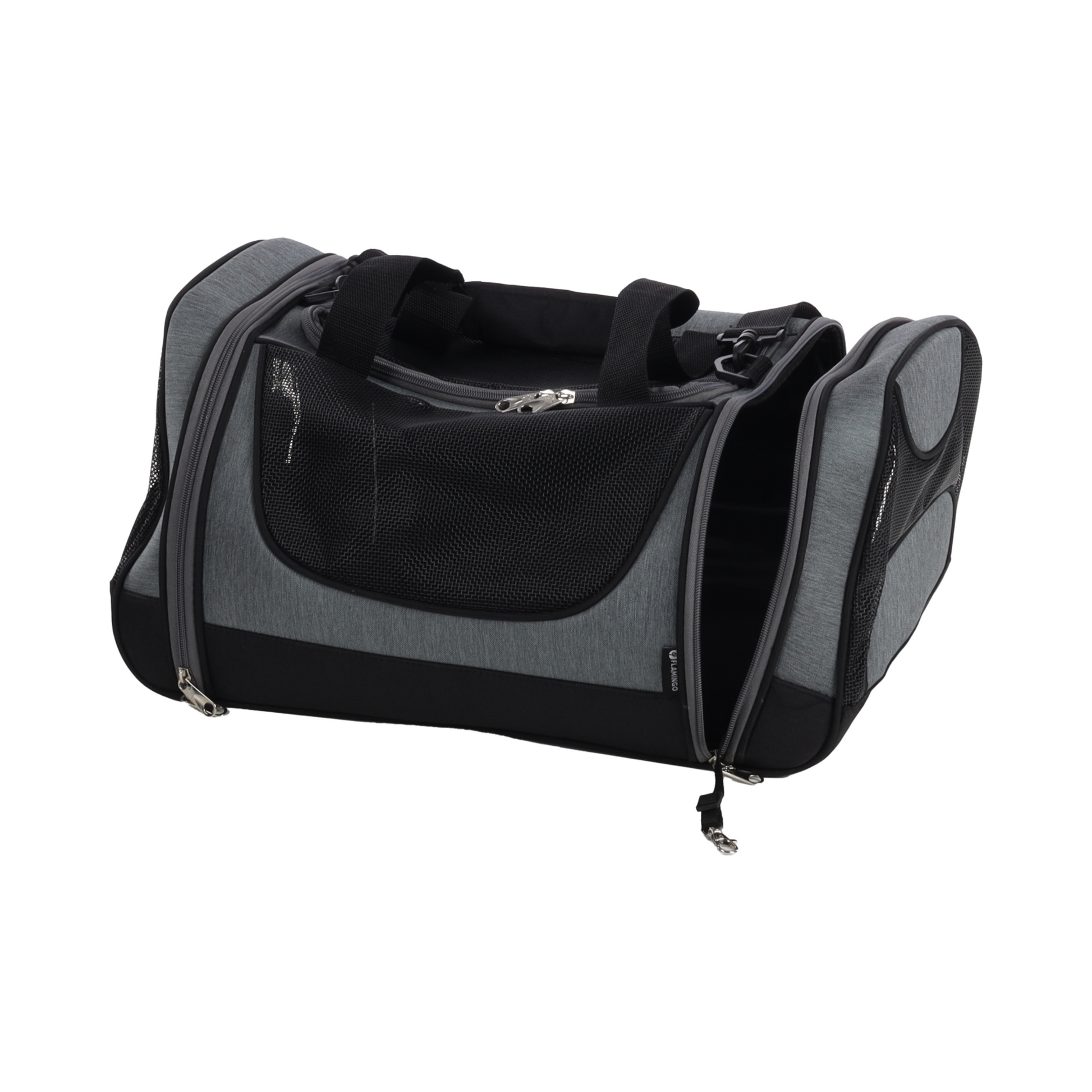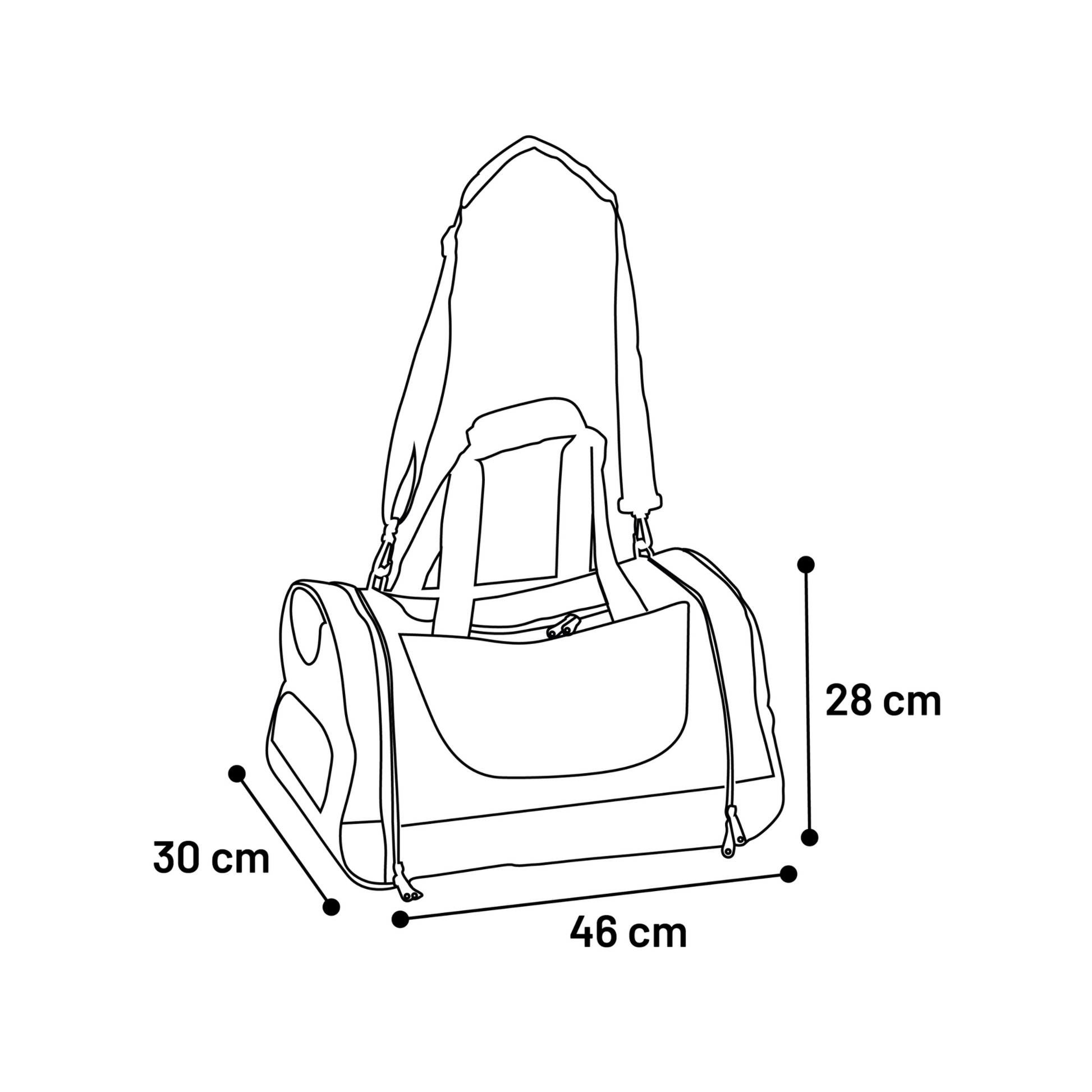 Ob Tierarzt, City-Trip oder Wochenendreise: Mit dieser leichten Tragetasche aus strapazierfähigem Polyester ist dein kleiner Hund oder deine Katze sicher und komfortabel dabei. Mehrere Reißverschluss-Öffnungen an Front, Ober- und Rückseite bieten schnellen Zugang, während großzügige Netzeinsätze für optimale Belüftung sorgen – und gleichzeitig den Ausblick ermöglichen. Innen schützt eine verstellbare Kurzleine mit Karabiner zuverlässig vor Herausspringen.