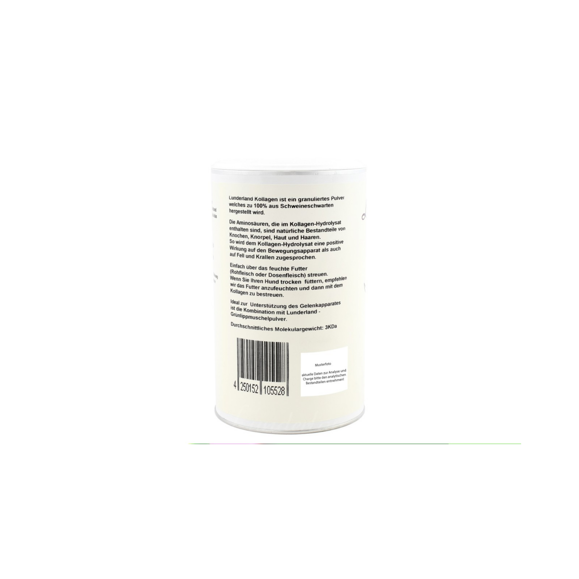 100 % Kollagen-Hydrolysat aus Schweineschwarten, granuliert und ohne weitere Zusätze – lebensmittelgeeignet (entspricht Speisegelatine-Qualität). Niedriges Molekulargewicht (~3 kDa) für gute Bioverfügbarkeit; enthält Kollagen Typ I & III. Zur schonenden Unterstützung von Gelenken, Knorpel, Haut, Fell & Krallen.*