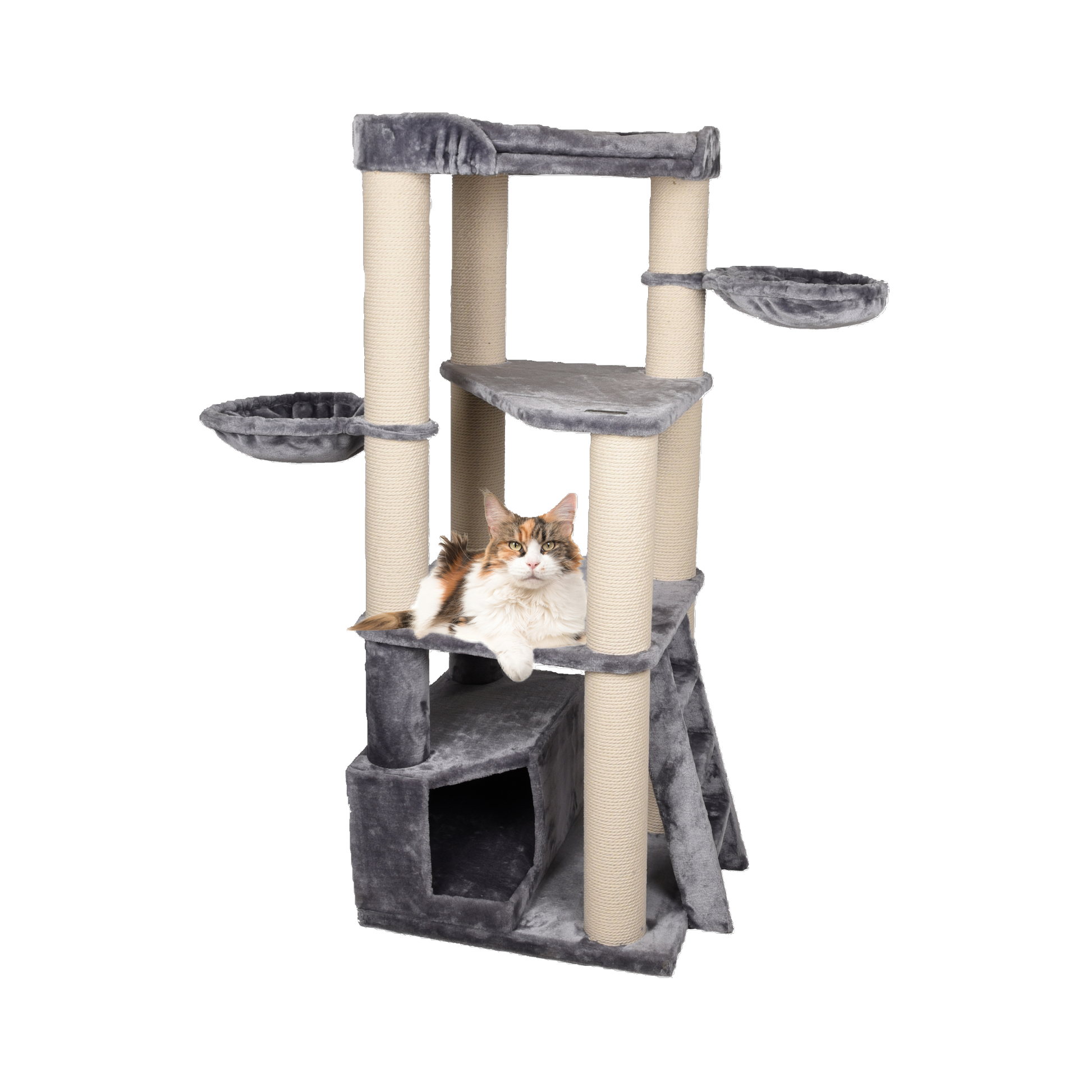 Der Kratzbaum Babel ist die ideale Lösung für große Katzenrassen und Mehrkatzenhaushalte. Mit extra dicken Kratzstämmen, gemütlichen Rückzugsorten und hochwertigen Materialien bietet er alles, was Ihre Katze zum Klettern, Kratzen und Entspannen braucht – in modernem Design und stilvollen Farben.
