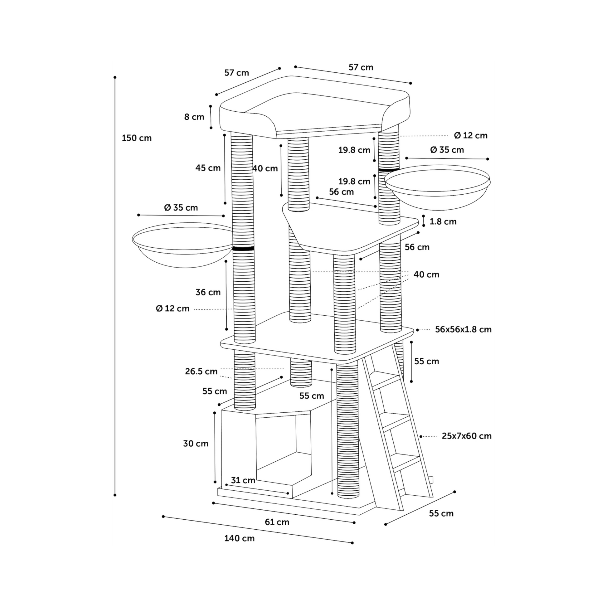 ✔ Gesamtgröße: 140 x 55 x 150 cm – viel Platz für mehrere Katzen
