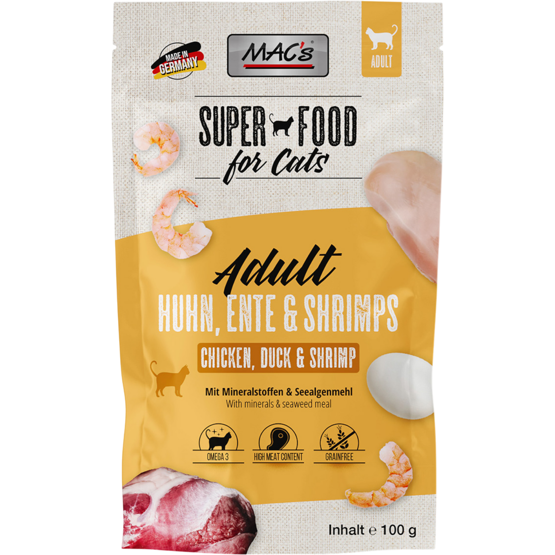 Dieses getreidefreie Nassfutter kombiniert zartes Huhn und feine Ente mit aromatischen Shrimps zu einem ausgewogenen Menü für Katzen, die Geflügel und Meeresfrüchte lieben. Hochwertige Proteine liefern Energie, unterstützen die Muskulatur und fördern Vitalität im Alltag.