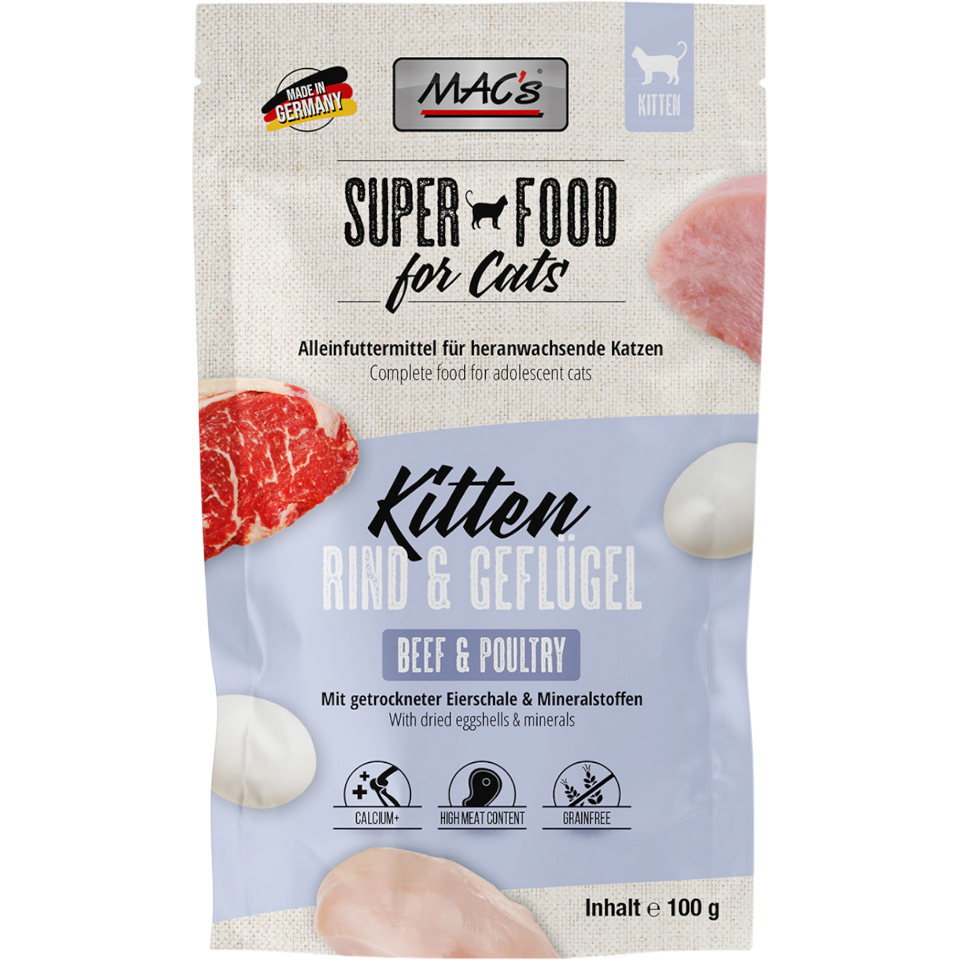 Der hohe Fleischanteil versorgt dein Kitten mit essenziellen Aminosäuren. Eierschalen liefern natürliches Calcium zur Unterstützung von Knochen und Zähnen. Die schonende Zubereitung sorgt für sehr gute Verträglichkeit und hohe Akzeptanz – ideal für kleine Katzenmägen. Der praktische 100-g-Frischebeutel ermöglicht saubere Portionierung und frischen Genuss bei jeder Mahlzeit.