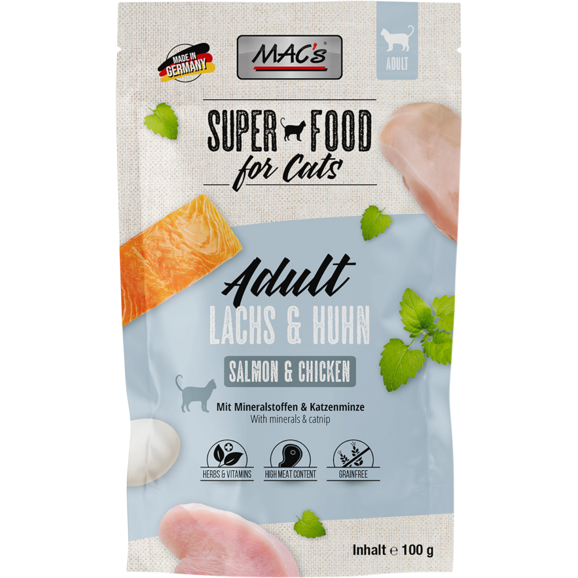 Dieses getreidefreie Nassfutter vereint zartes Huhn mit aromatischem Lachs zu einem ausgewogenen Menü für anspruchsvolle Katzen. Hochwertige Proteine liefern Energie und unterstützen Muskulatur sowie Vitalität im Alltag.