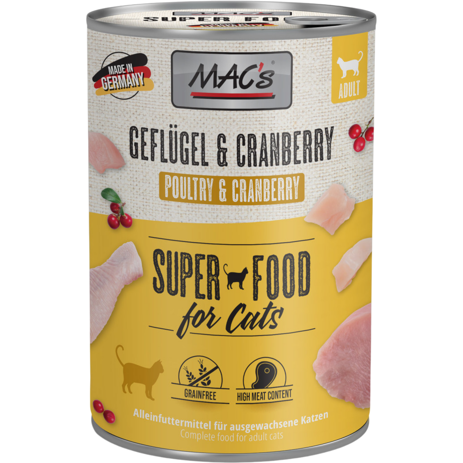 Dieses hochwertige Nassfutter kombiniert zartes Geflügel mit fruchtiger Cranberry zu einem ausgewogenen, besonders schmackhaften Menü für anspruchsvolle Katzen. Der sehr hohe Fleischanteil liefert wertvolle Proteine für Energie, Muskulatur und Vitalität im Alltag.