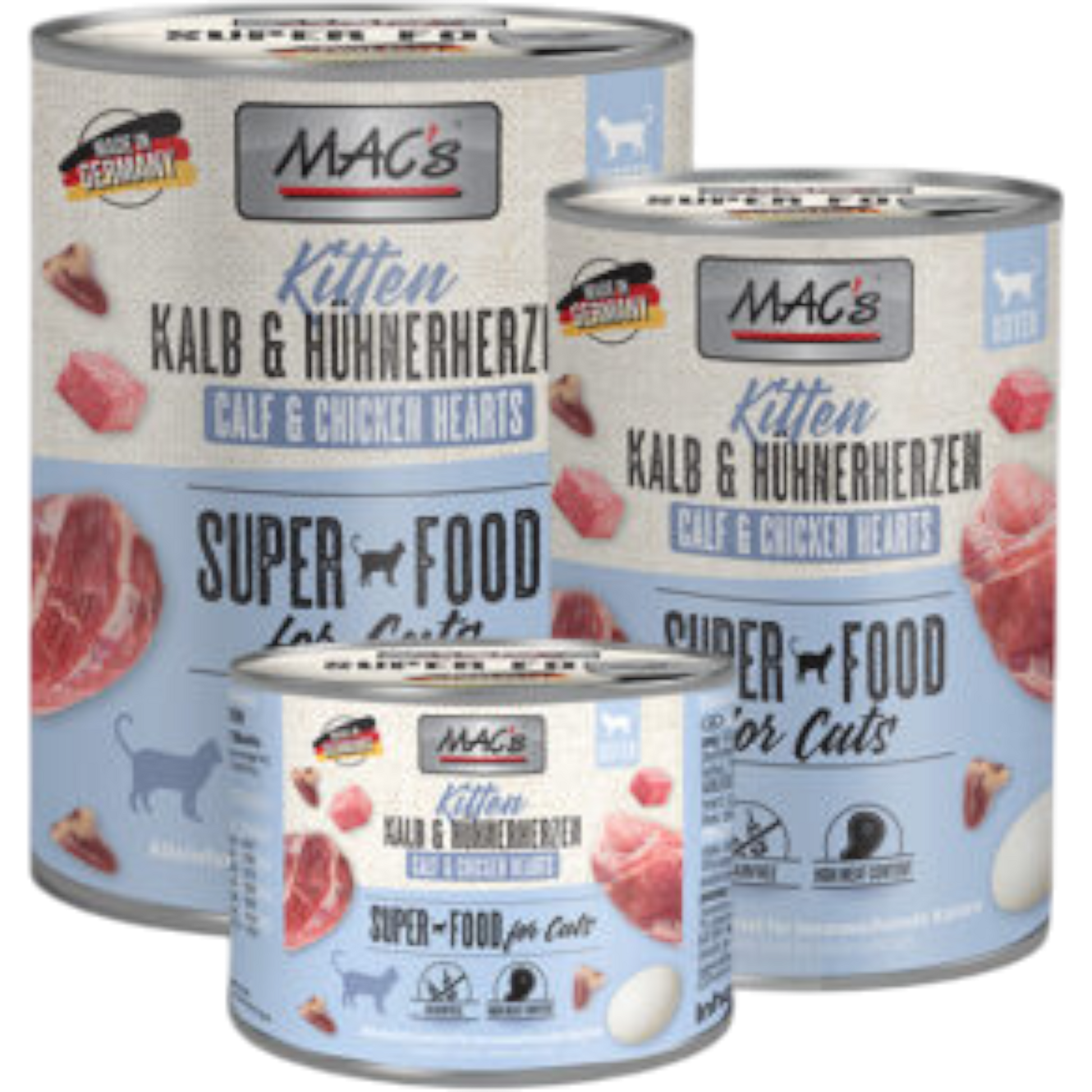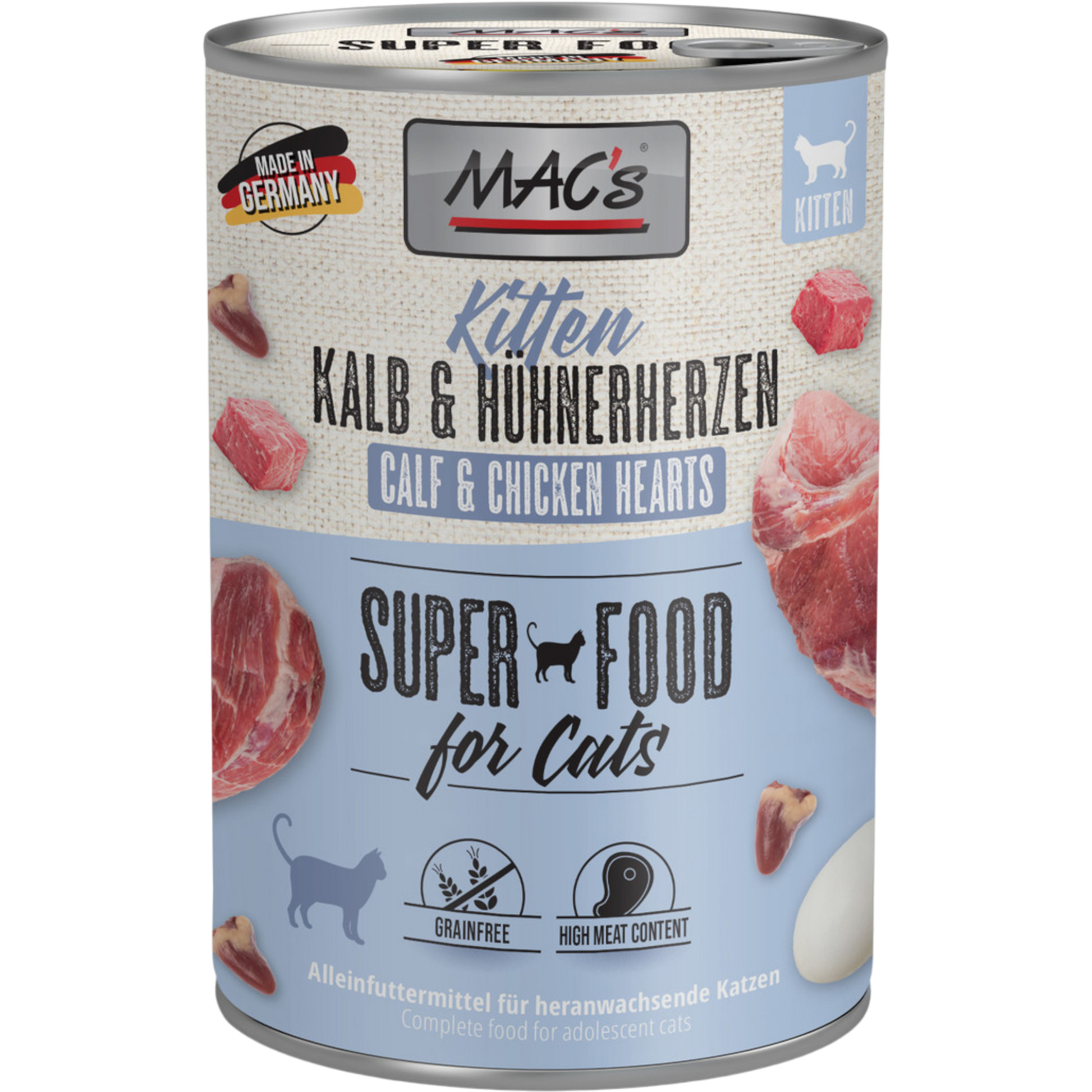 Dieses hochwertige Kitten-Nassfutter kombiniert zartes Kalb mit saftigen Hühnerherzen zu einer besonders schmackhaften und ausgewogenen Mahlzeit für heranwachsende Katzen. Die fleischbetonte Rezeptur liefert hochwertige Proteine und ein speziell angepasstes Aminosäureprofil, das Wachstum, Muskulatur und Entwicklung im ersten Lebensjahr gezielt unterstützt.