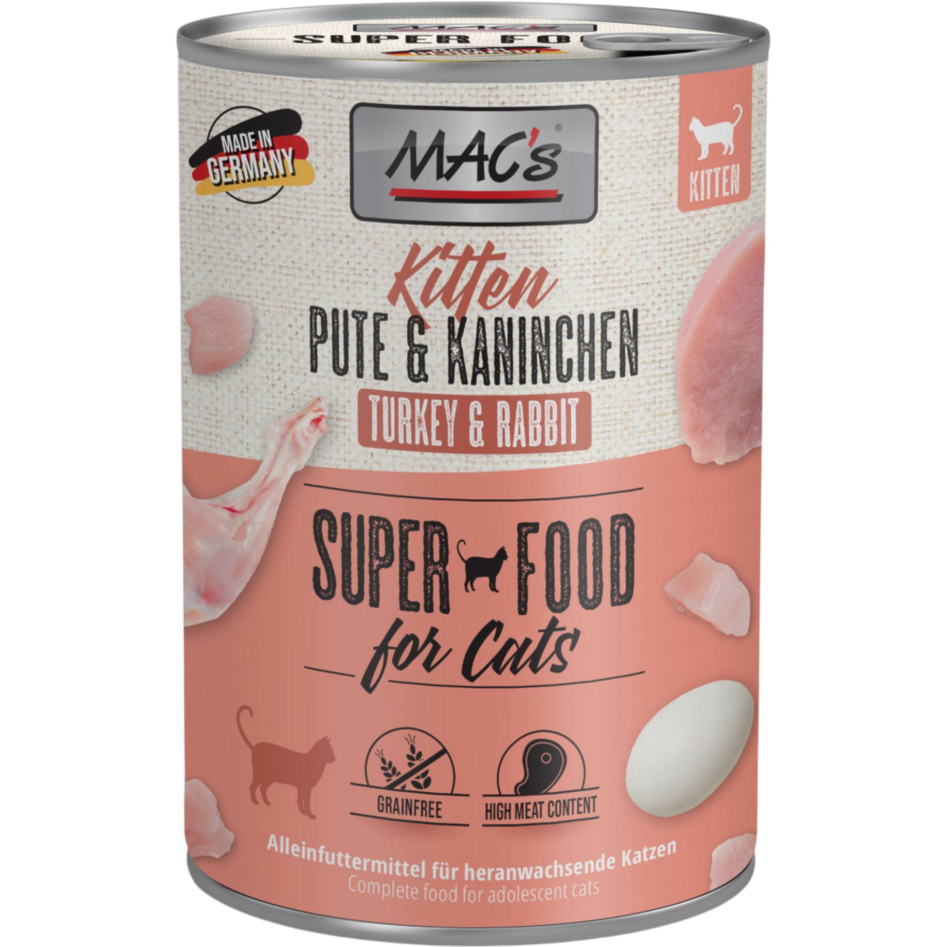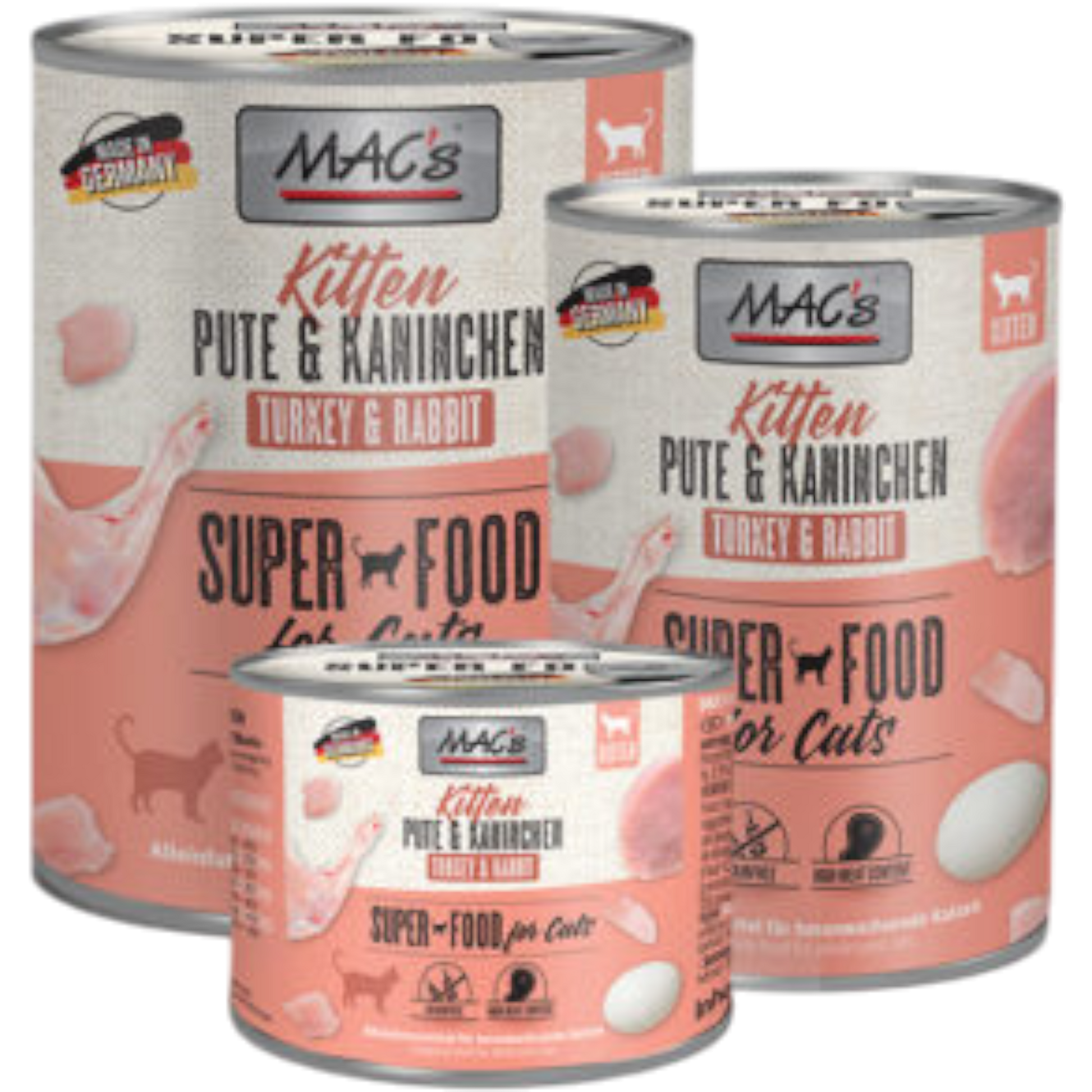 Dieses hochwertige Kitten-Nassfutter kombiniert zarte Pute mit feinem Kaninchen zu einer besonders bekömmlichen, ausgewogenen Mahlzeit für heranwachsende Katzen. Die fleischbetonte Rezeptur liefert hochwertige Proteine und ein angepasstes Aminosäureprofil, das gezielt Wachstum, Muskulatur und Vitalität in der Entwicklungsphase unterstützt.