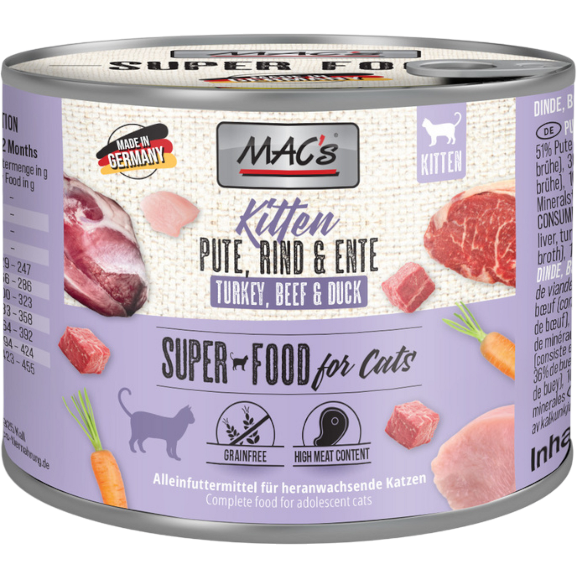 Die getreidefreie Zusammensetzung ist leicht verdaulich und unterstützt eine stabile Verdauung. Karotten liefern natürliche Vitamine und runden das Menü ausgewogen ab. Schonend zubereitet und in mehreren Dosen-Größen erhältlich, eignet sich dieses Futter ideal für Kitten und junge Katzen im täglichen Einsatz.