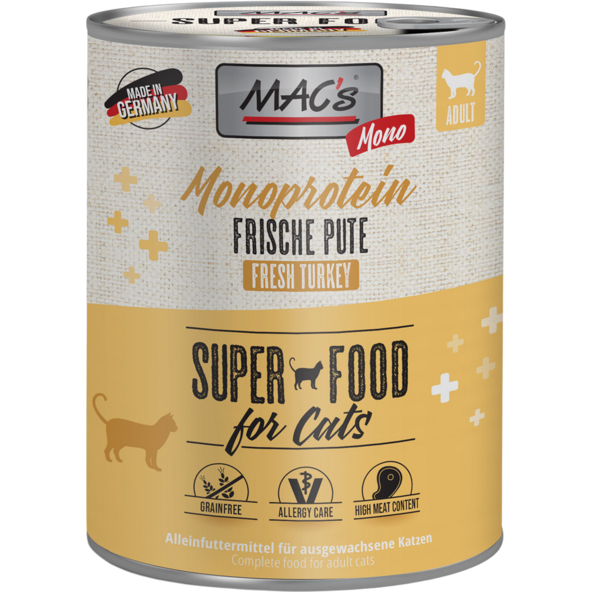 Dieses hochwertige Nassfutter von MAC’s wurde speziell für empfindliche Katzen entwickelt und basiert auf nur einer tierischen Proteinquelle: frische Pute. Die getreidefreie Rezeptur eignet sich ideal für Katzen mit Futtermittelunverträglichkeiten oder sensibler Verdauung.