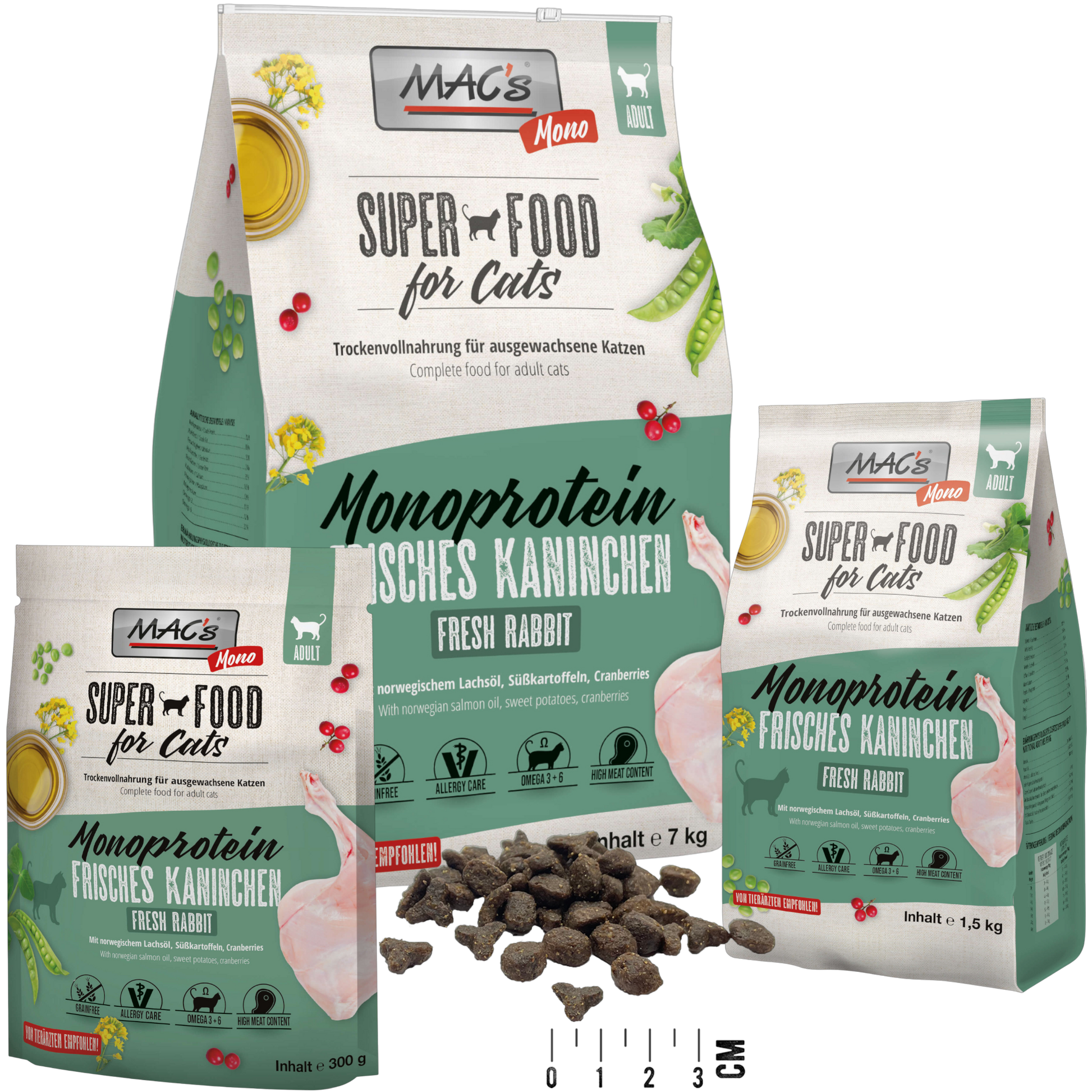 Dieses hochwertige Monoprotein-Trockenfutter wurde gezielt für ernährungssensible Katzen entwickelt. Mit frischem Kaninchen als einziger tierischer Proteinquelle bietet es eine klare, reduzierte Rezeptur, die sich ideal für Ausschlussdiäten und empfindliche Samtpfoten eignet. Die Kombination aus hochwertigem Fleisch und ausgewählten funktionalen Zutaten sorgt für eine sehr gute Verträglichkeit und hohe Akzeptanz.