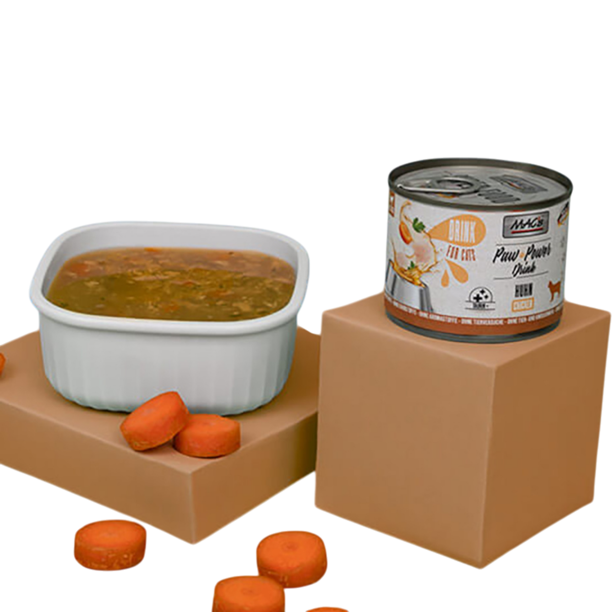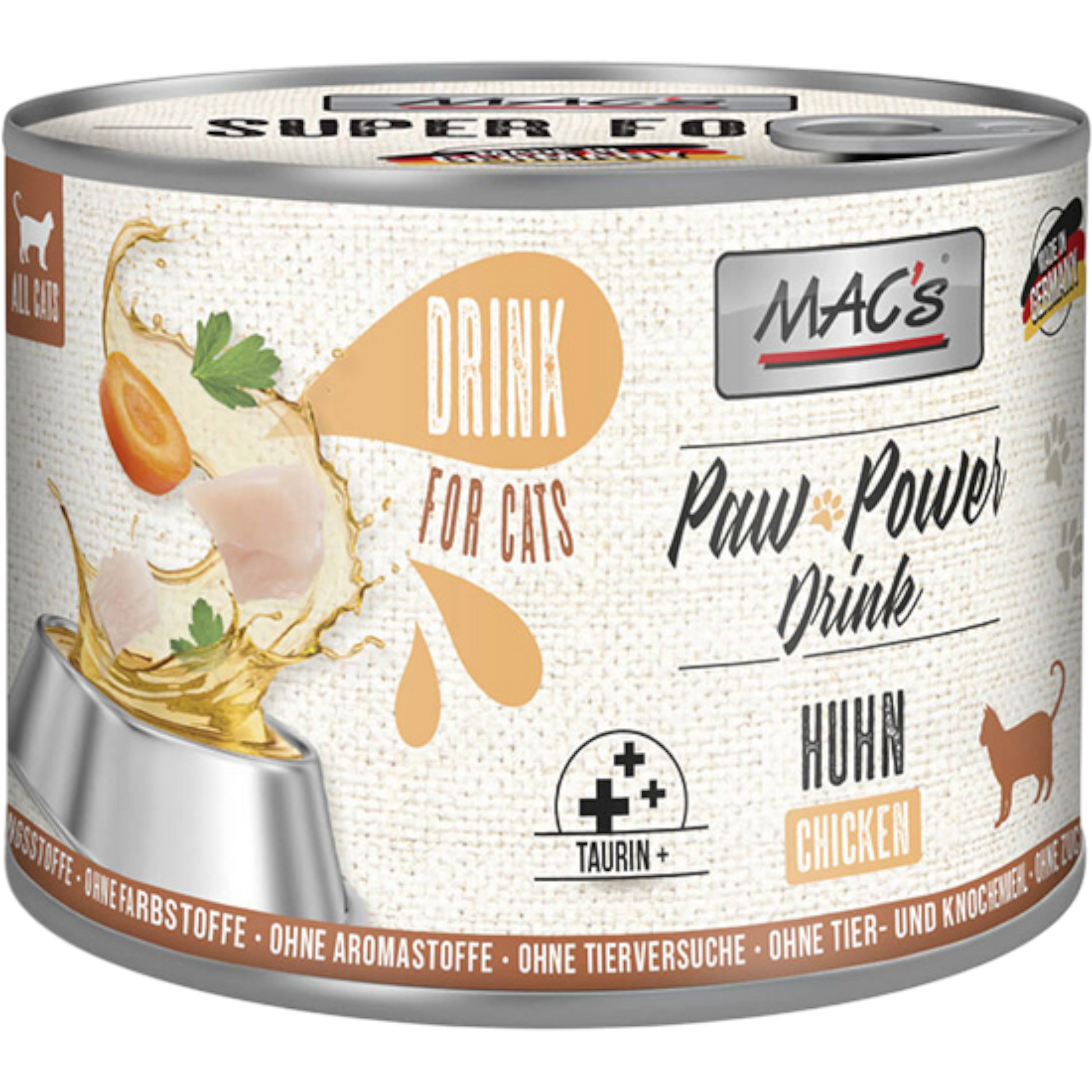 Dieser funktionale Trinksnack liefert deiner Katze schmackhafte Paw Power in flüssiger Form: MAC’s Paw Power Drink Huhn kombiniert zartes Hühnerfleisch mit viel Fleischsaft und ausgewähltem Gemüse zu einem besonders gut akzeptierten Ergänzungsfuttermittel. Ideal zur Unterstützung der täglichen Flüssigkeitsaufnahme – besonders für Katzen, die wenig trinken.